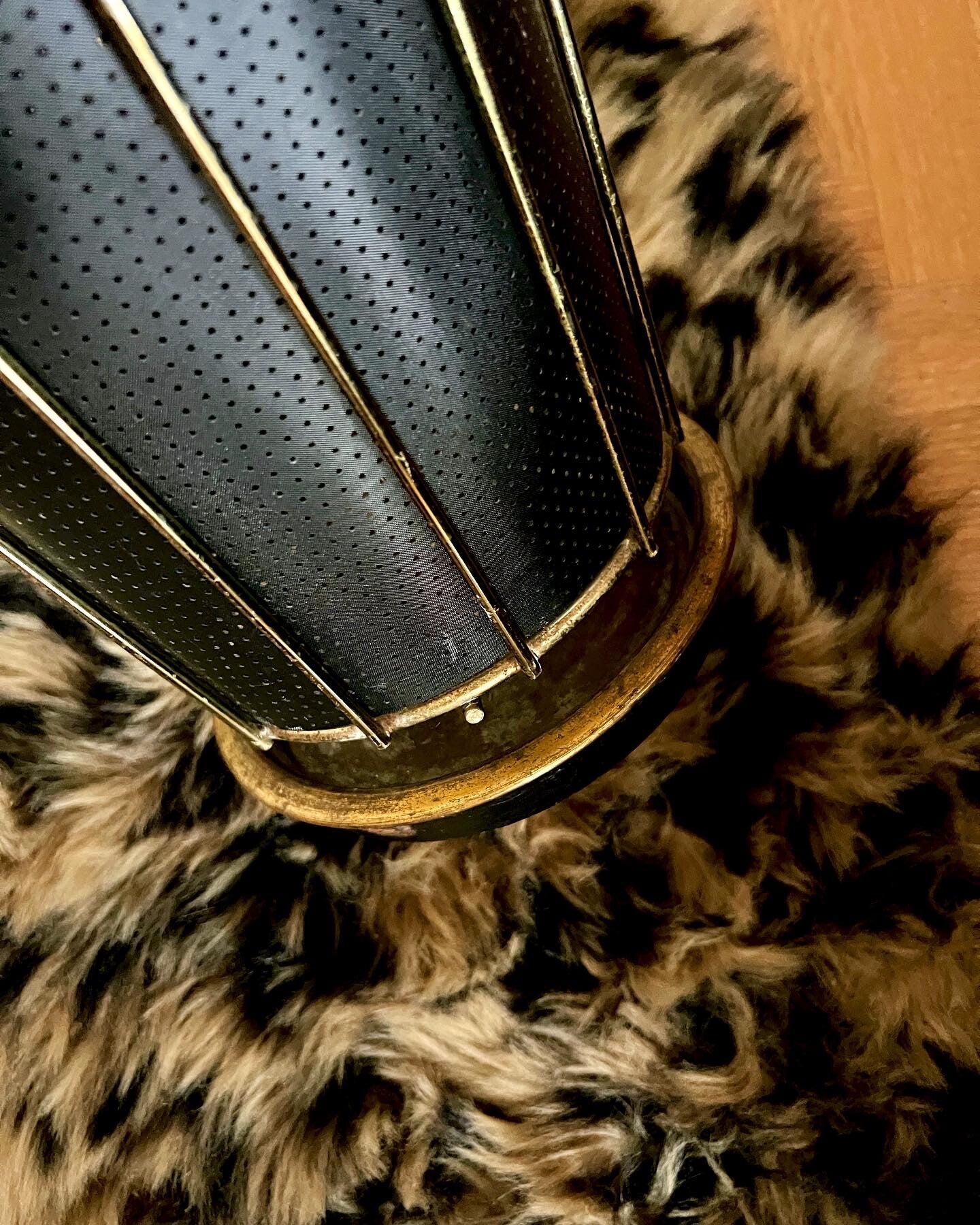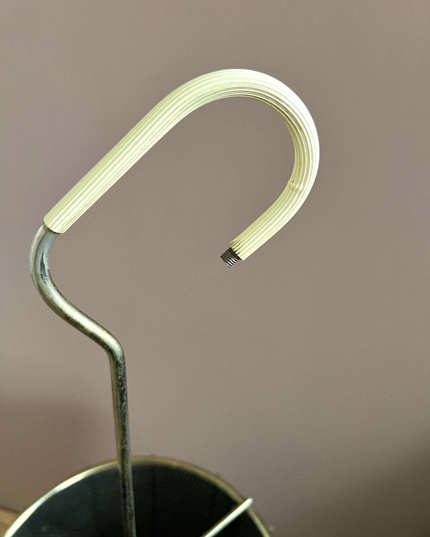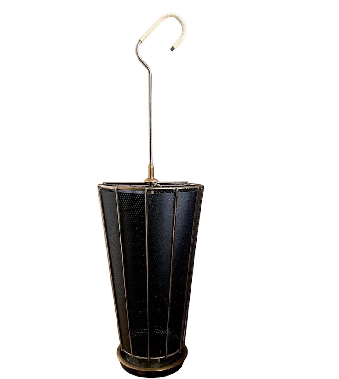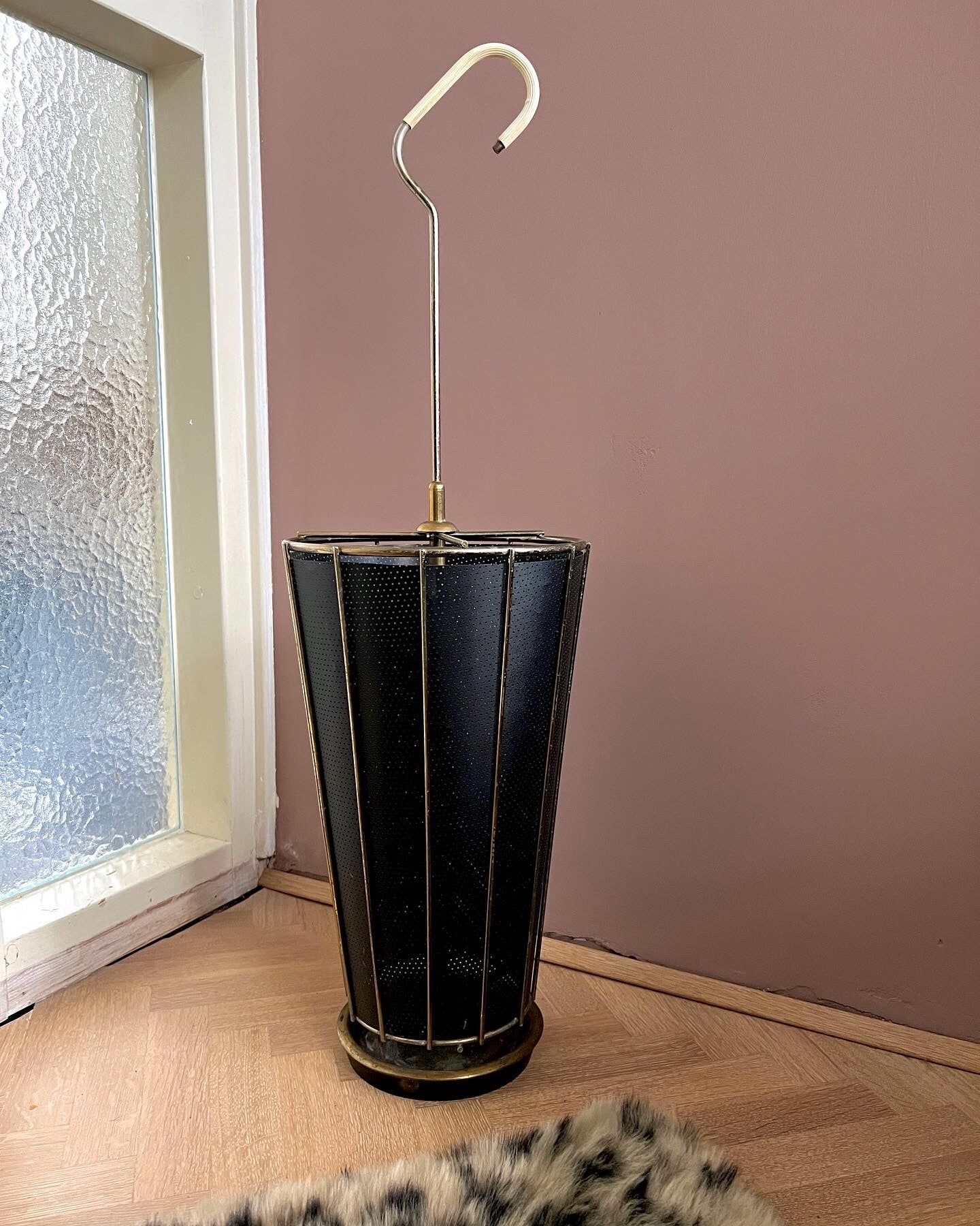 Chique jaren 50/60 paraplubak met messing frame en geperforeerd vinyl aan de binnenzijde. Deze paraplubak is een echte eyecatcher ෆ