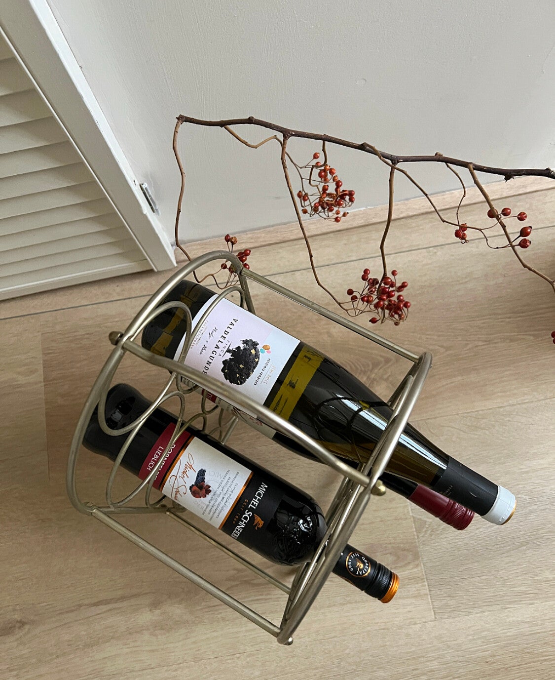 Bij wie krijgt dit leuke metalen wijnrekje een prominent plekje? Er is plaats voor 7 flessen.