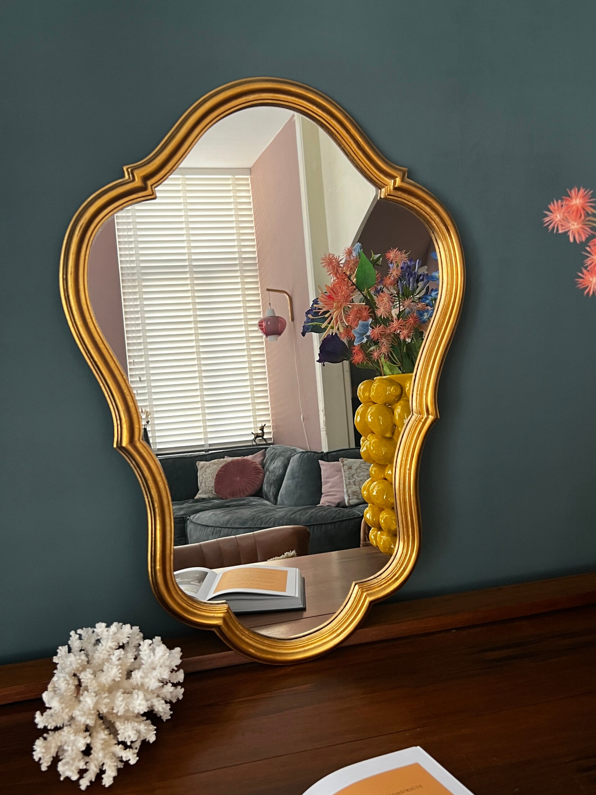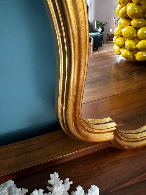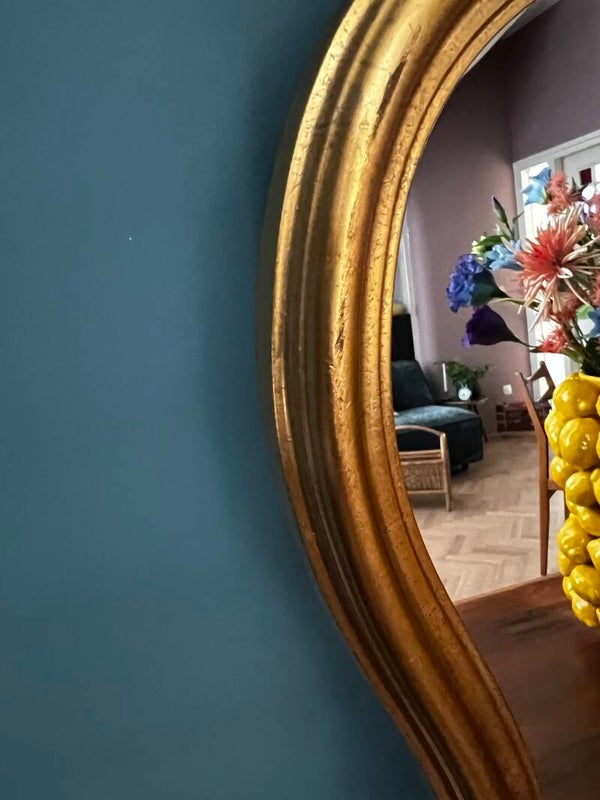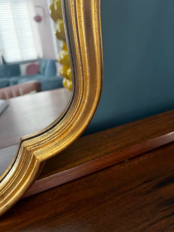 Mooie Barok spiegel, een prachtig item voor in je interieur. De spiegel heeft een houten lijst deze is bewerkt met bladgoud.