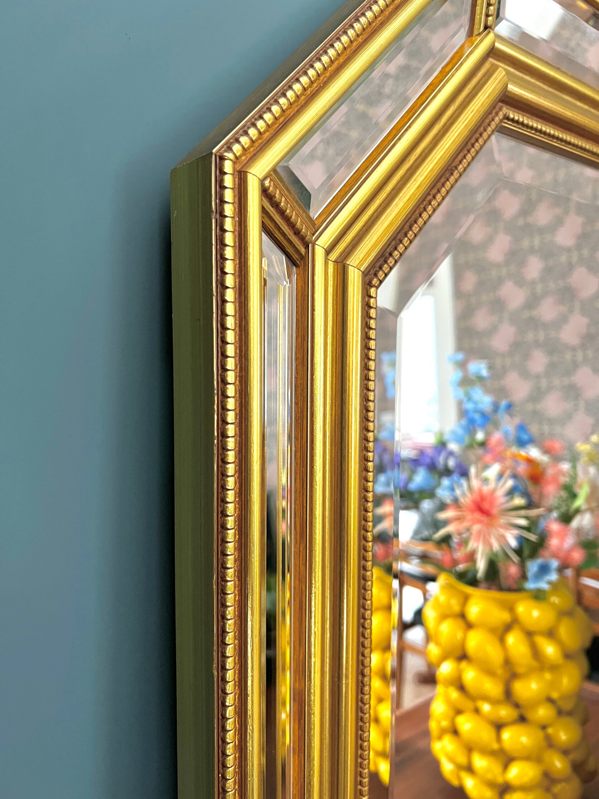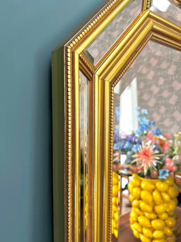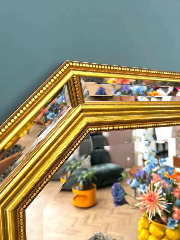 Bijzonder mooie facet geslepen spiegel, met mooie spiegelende rand. Très Chique! Waar deze ook komt, het zal fantastisch staan.