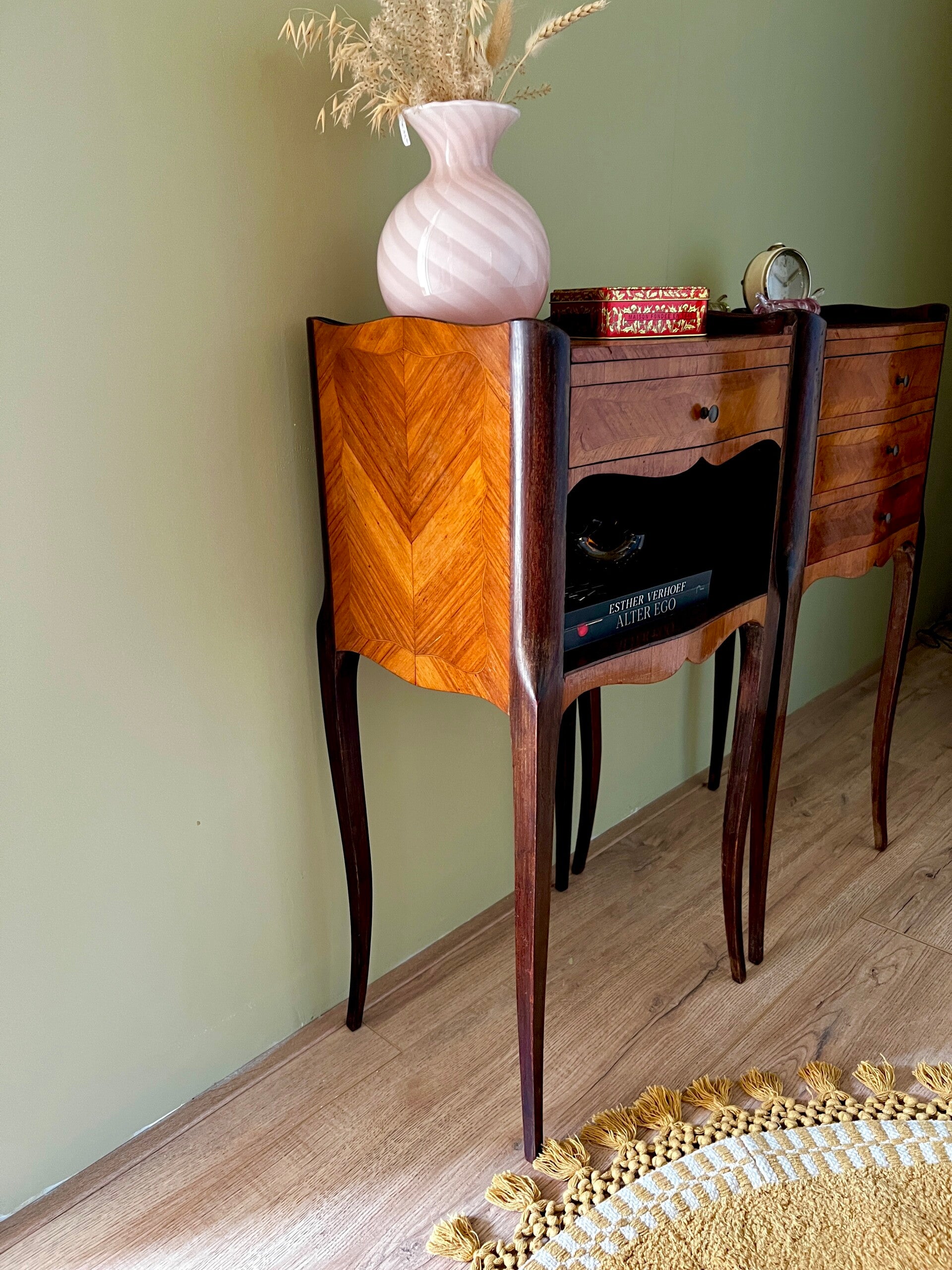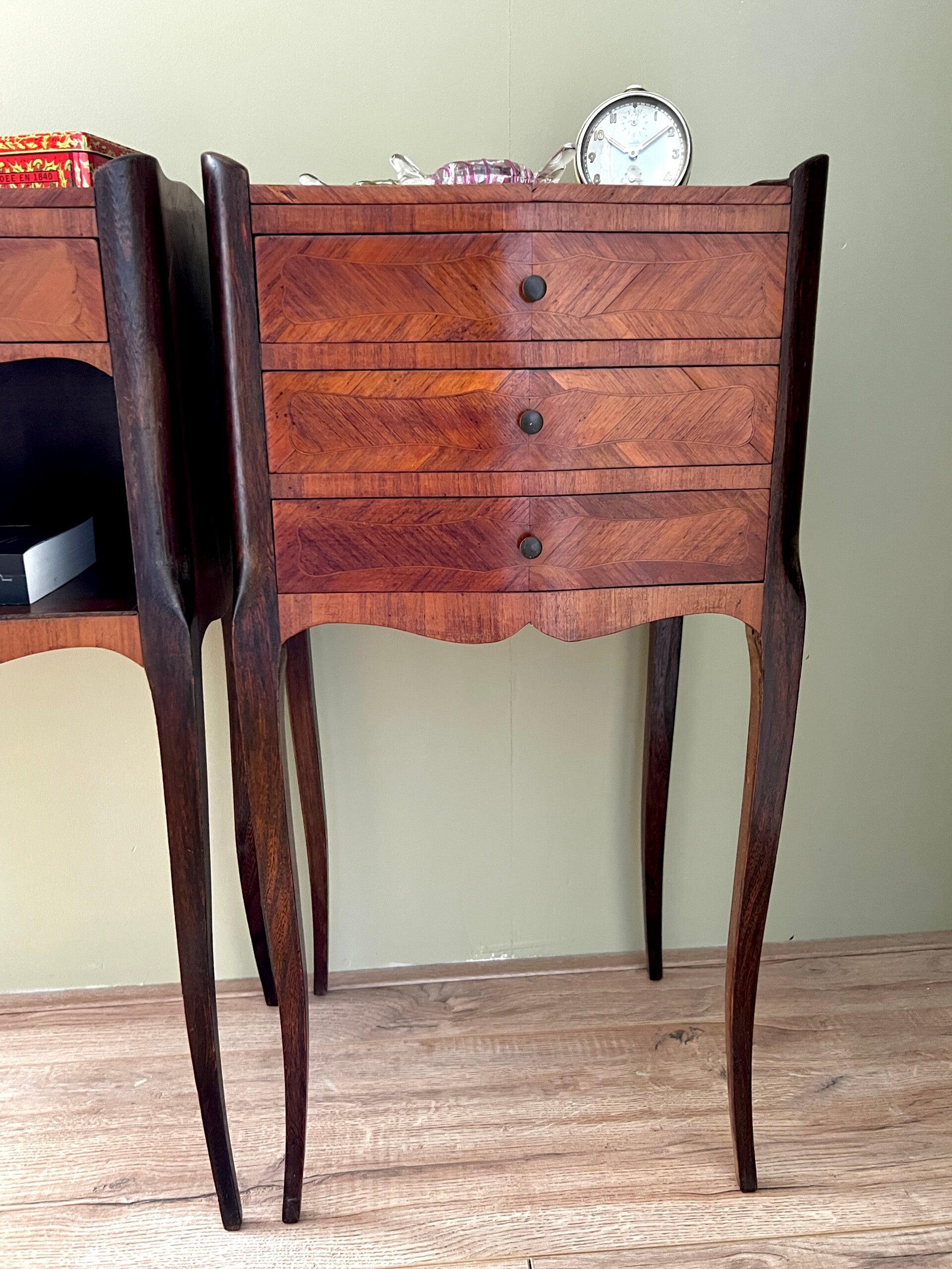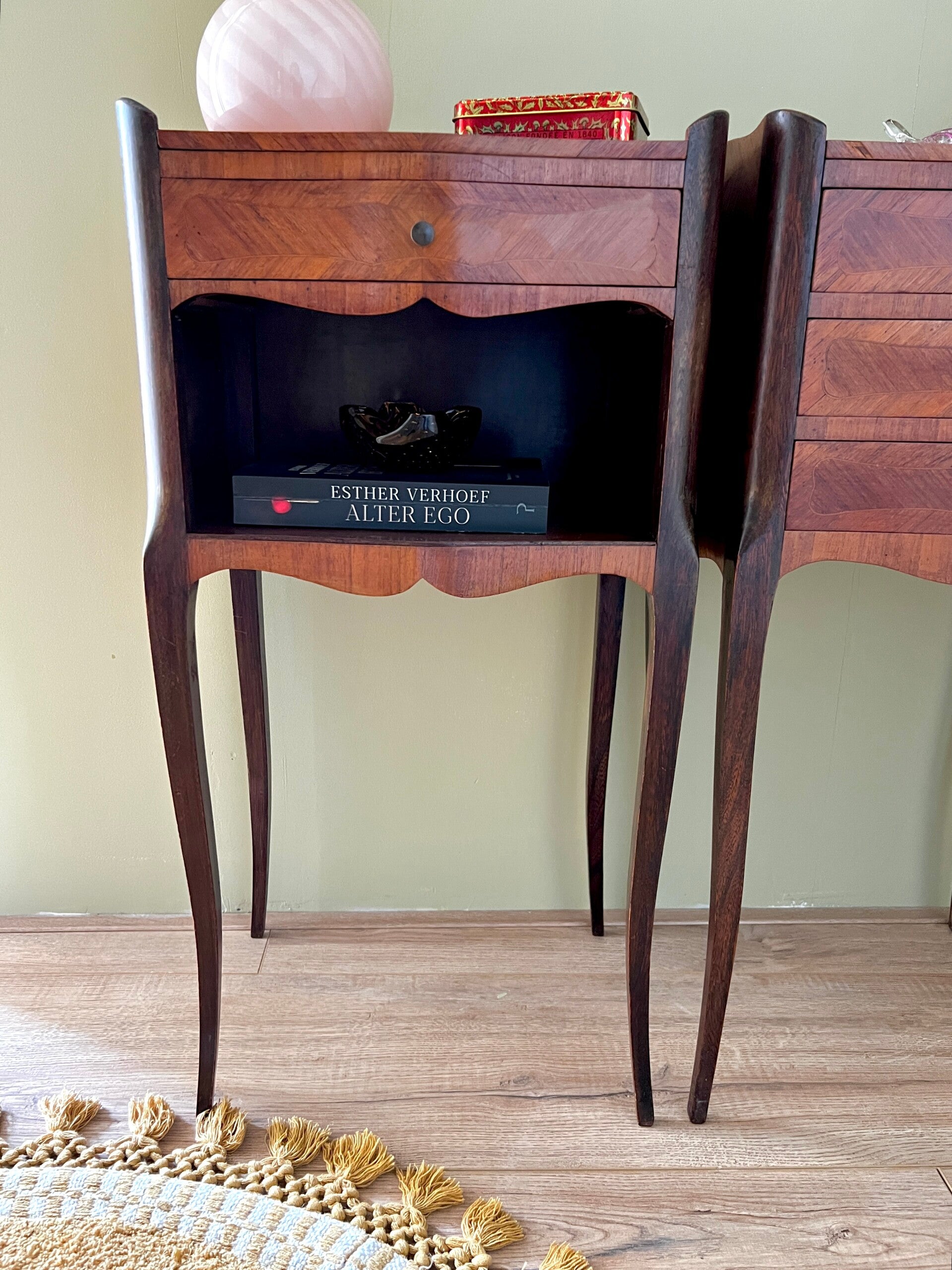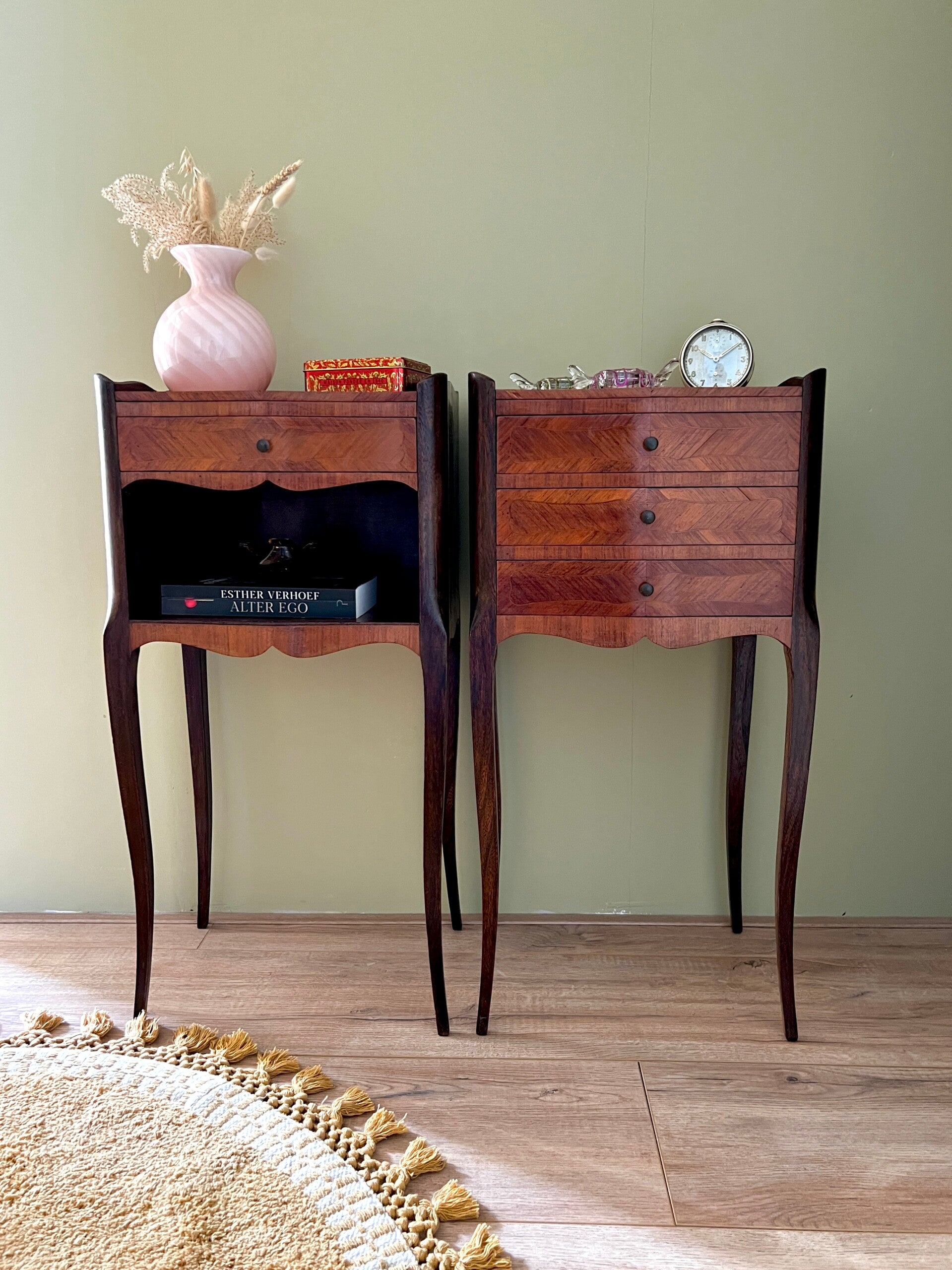 Prachtige set van twee nachtkastjes uit Frankrijk.