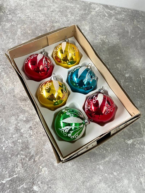 Set van 6 Oude Kerstballen Geel Blauw Groen Rood 6cm