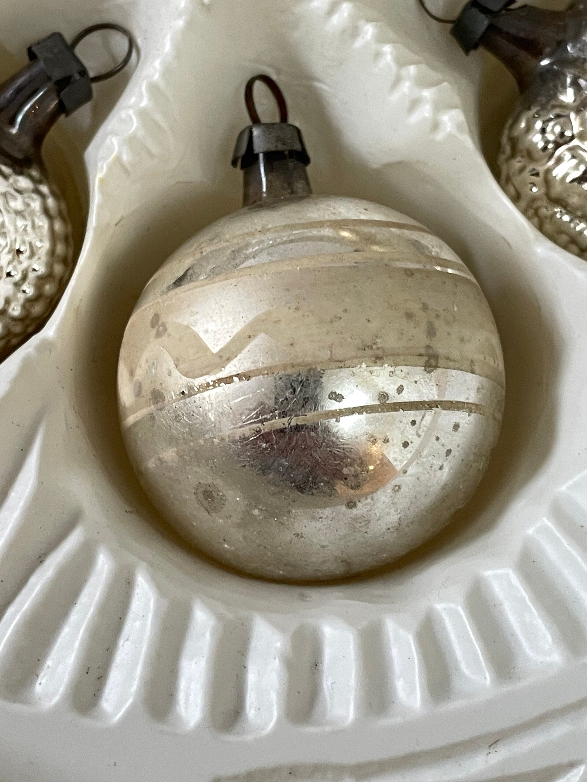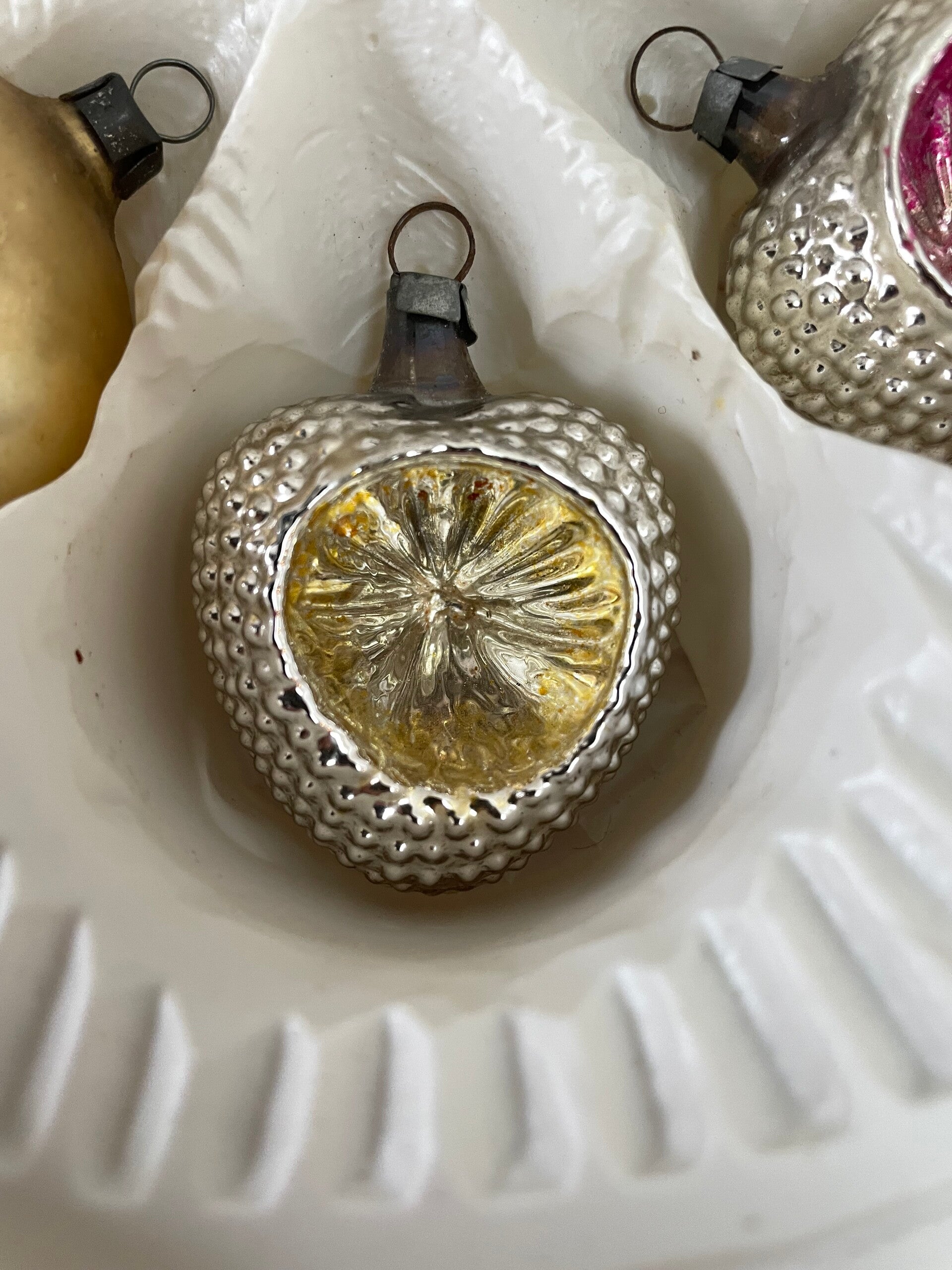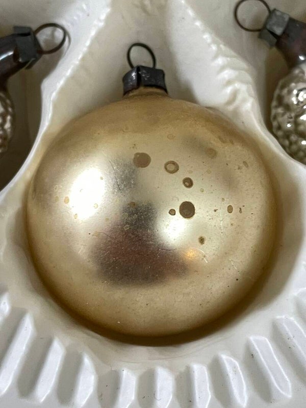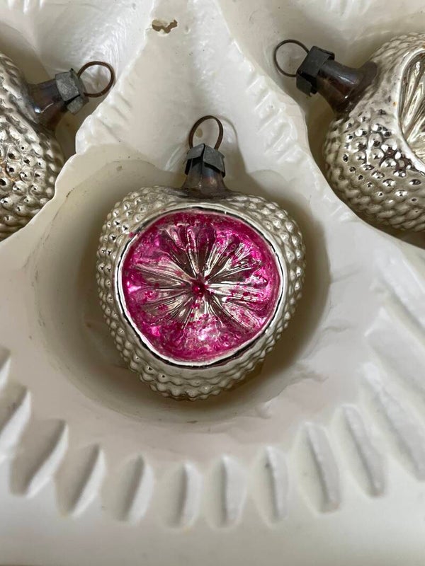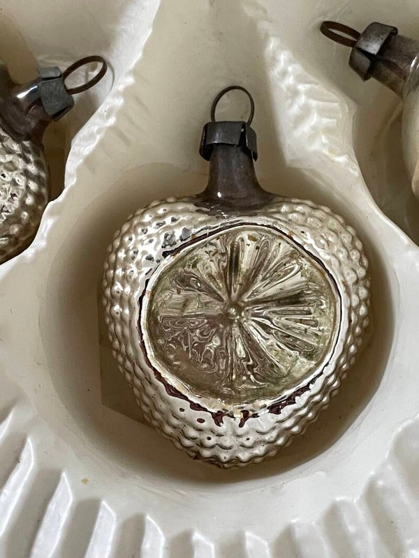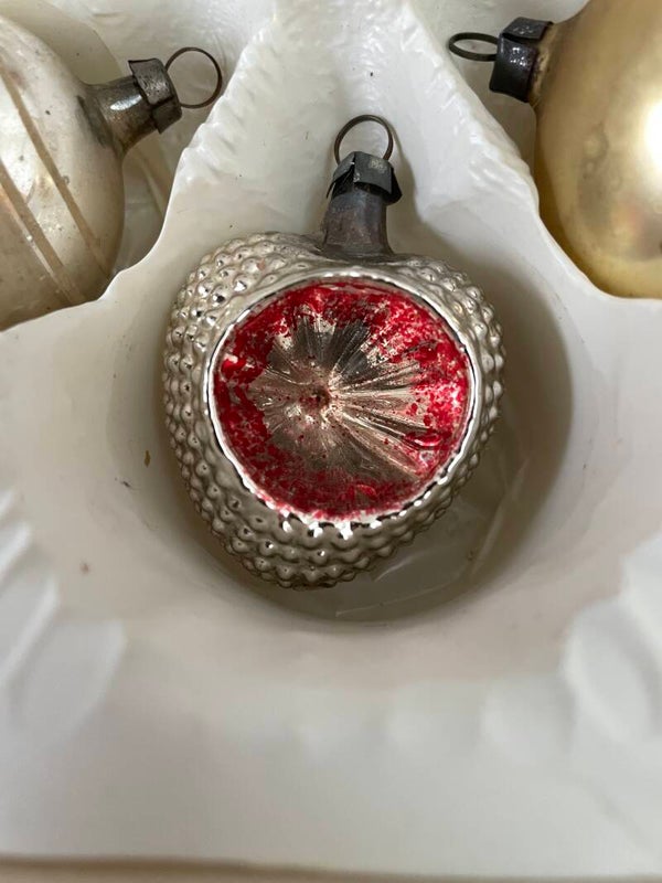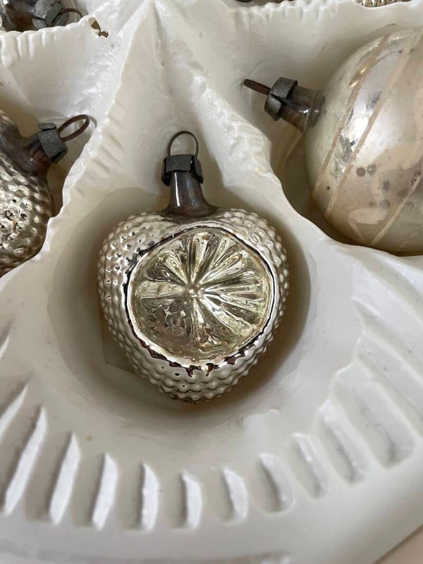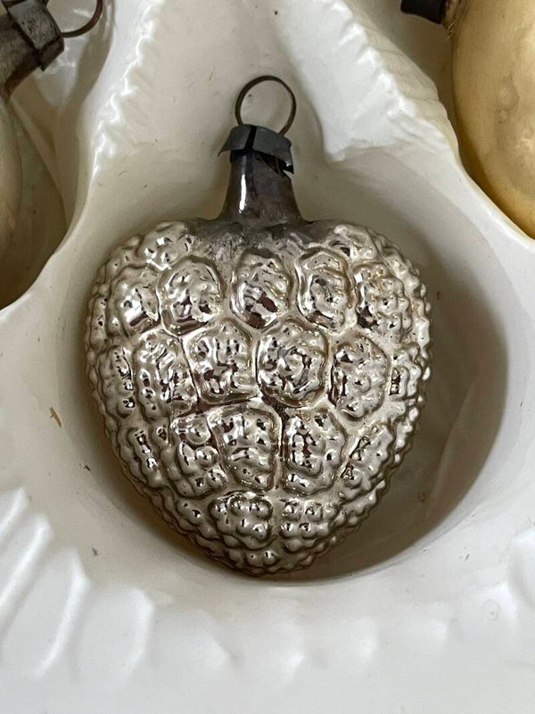 Set van 6 Antieke Vormballen Kerstballen Hart Aardbei Zilver Deukballen