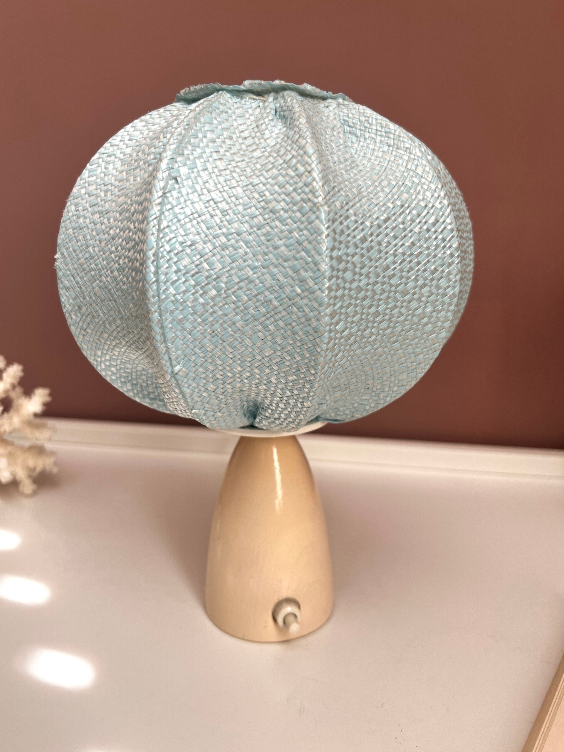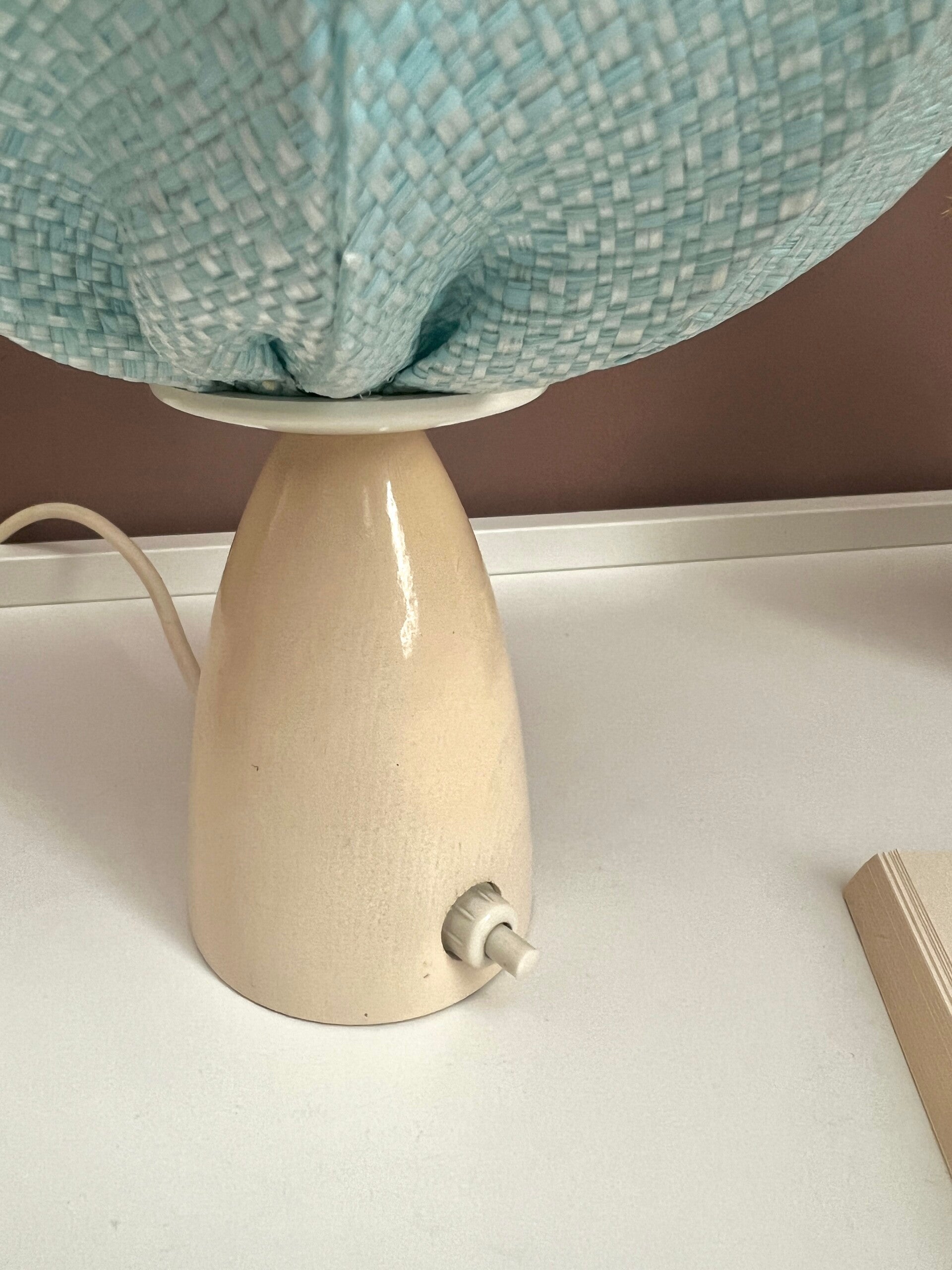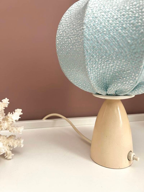 Heel cute vintage tafellampje met licht blauw gestijfd linnen kapje👌🏻