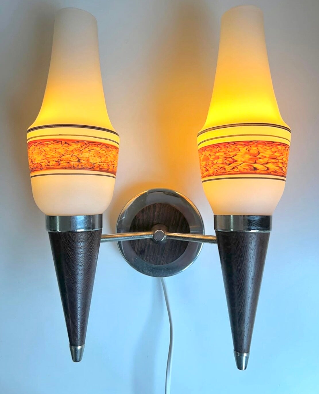 Toffe karakteristieke jaren 70’s wandlamp met twee kelken.