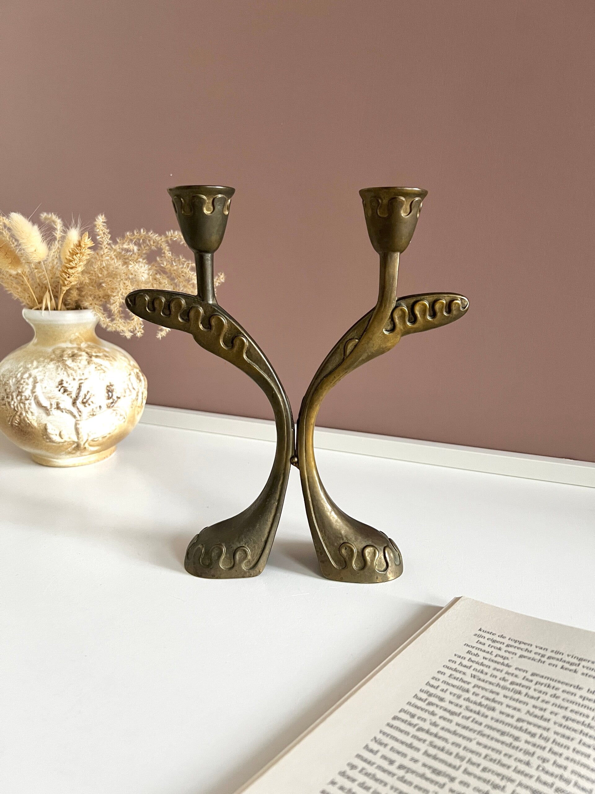 Deze jaren 60 kandelaar is echt geweldig, heel sierlijk bewerkt en mooi gevormd. Deze kandelaar is gemaakt van massief messing. Wie heeft er nog een plekje voor deze eyecatcher😍
