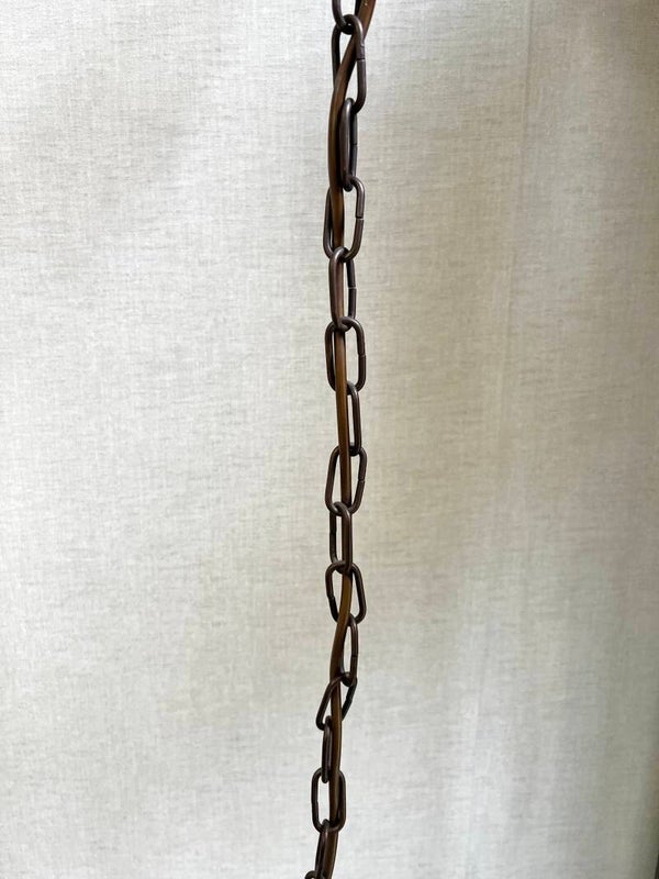 Prachtig gewolkt opaline glas in lood gezet. De buitenste bloem bladeren zijn van groenachtig glas en de binnenste bloem bladeren in crème wit. Hij ziet er niet alleen fantastisch uit maar geeft ook heel gezellig licht💡