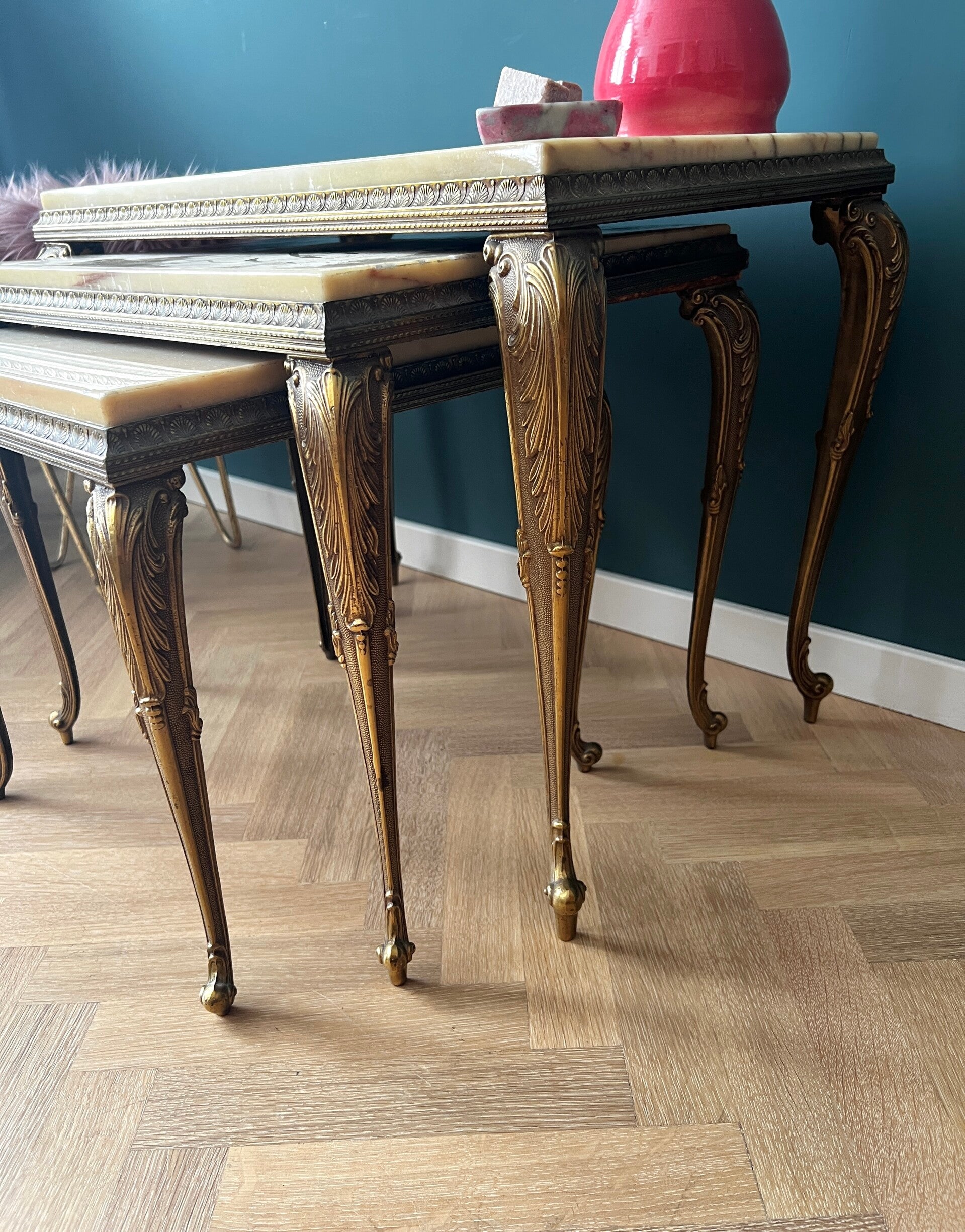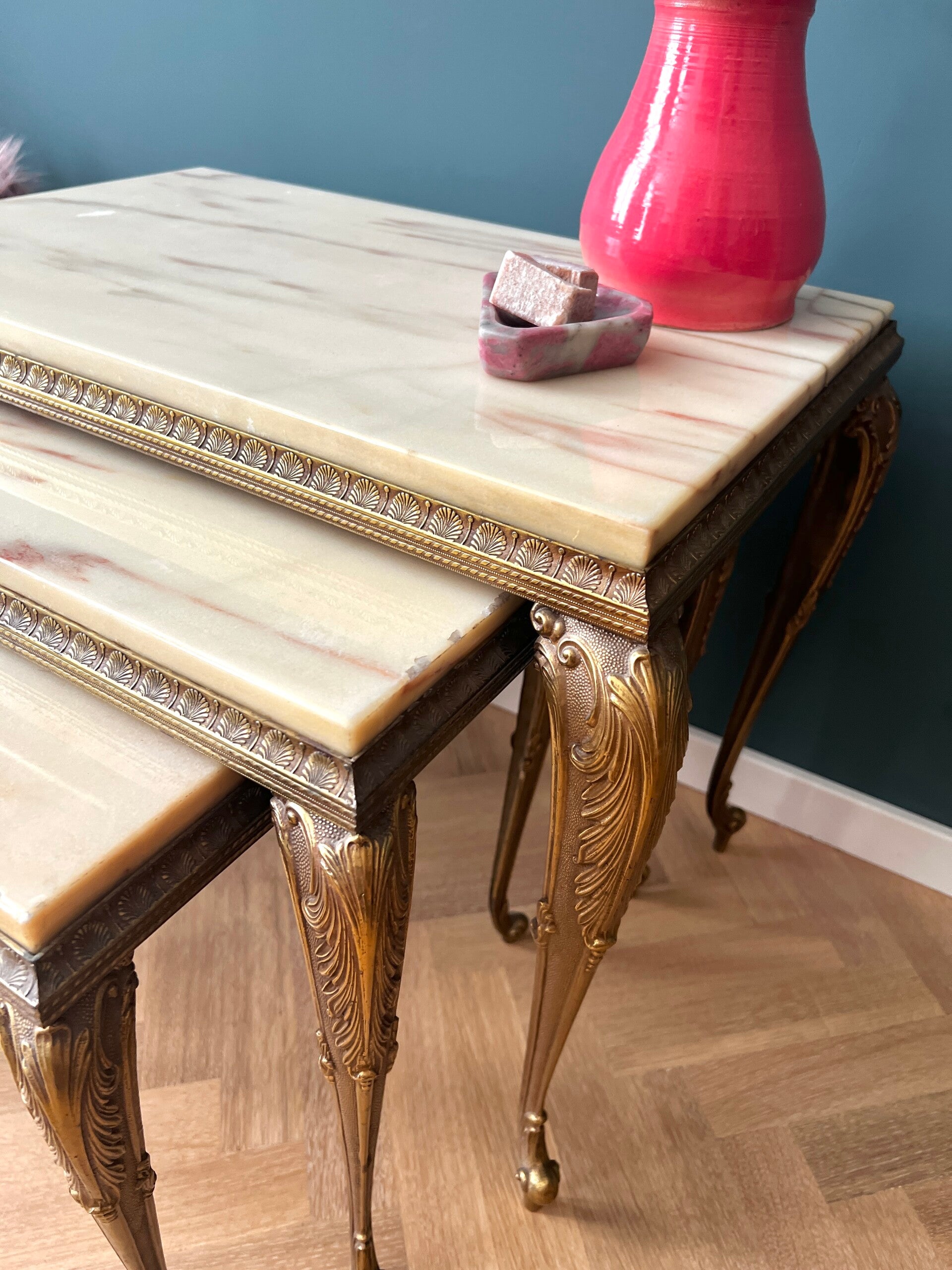 Prachtige Franse barok nesting tables,messing onderstel met onyx blad.De mimi set verkeert in goede staat! ππ»