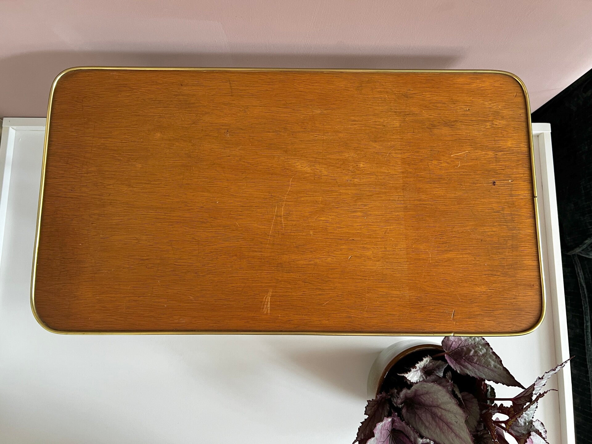 Het tafeltje verkeert in erg mooie staat prachtige messing sokjes en messing trim om de rand.