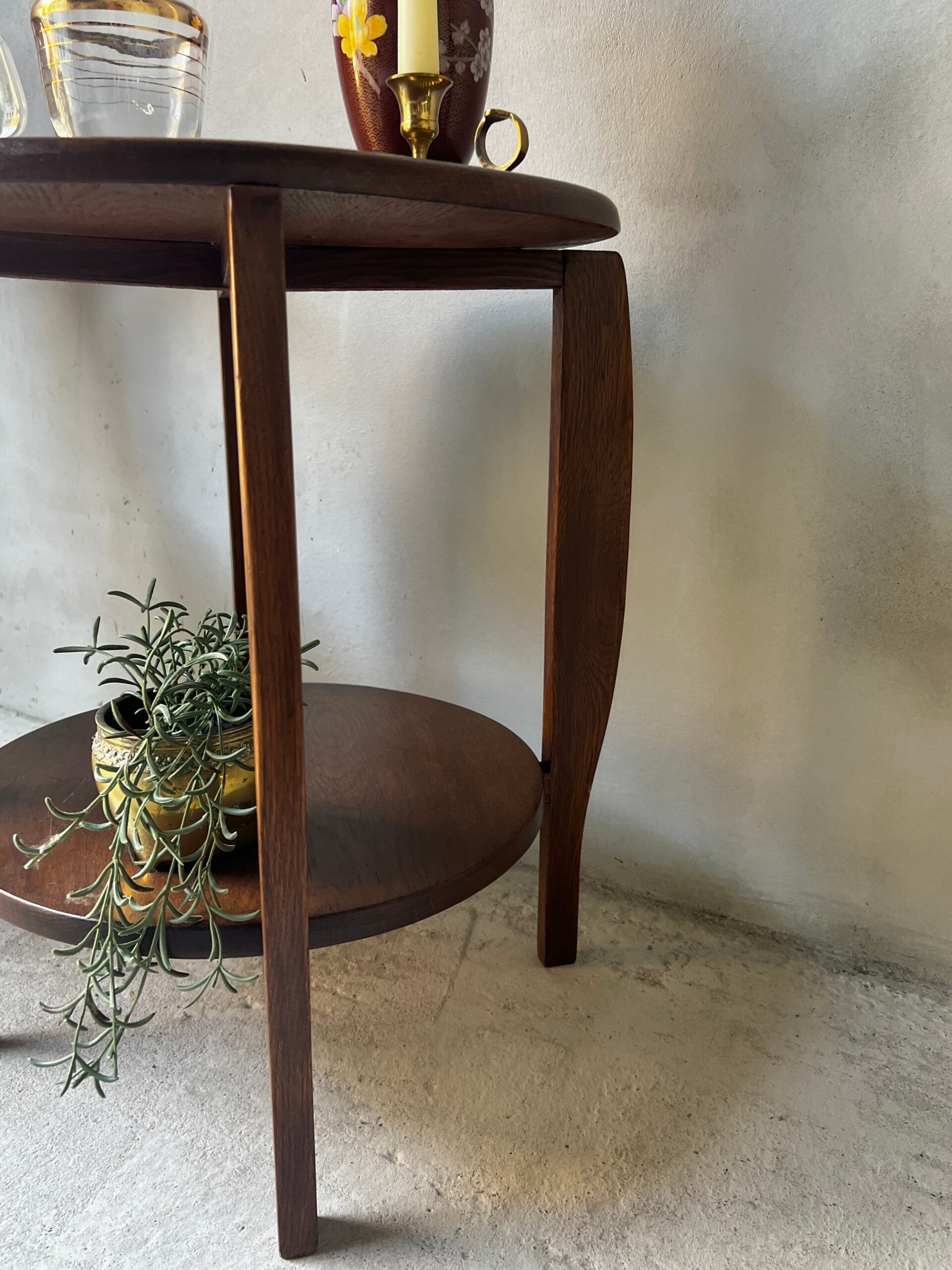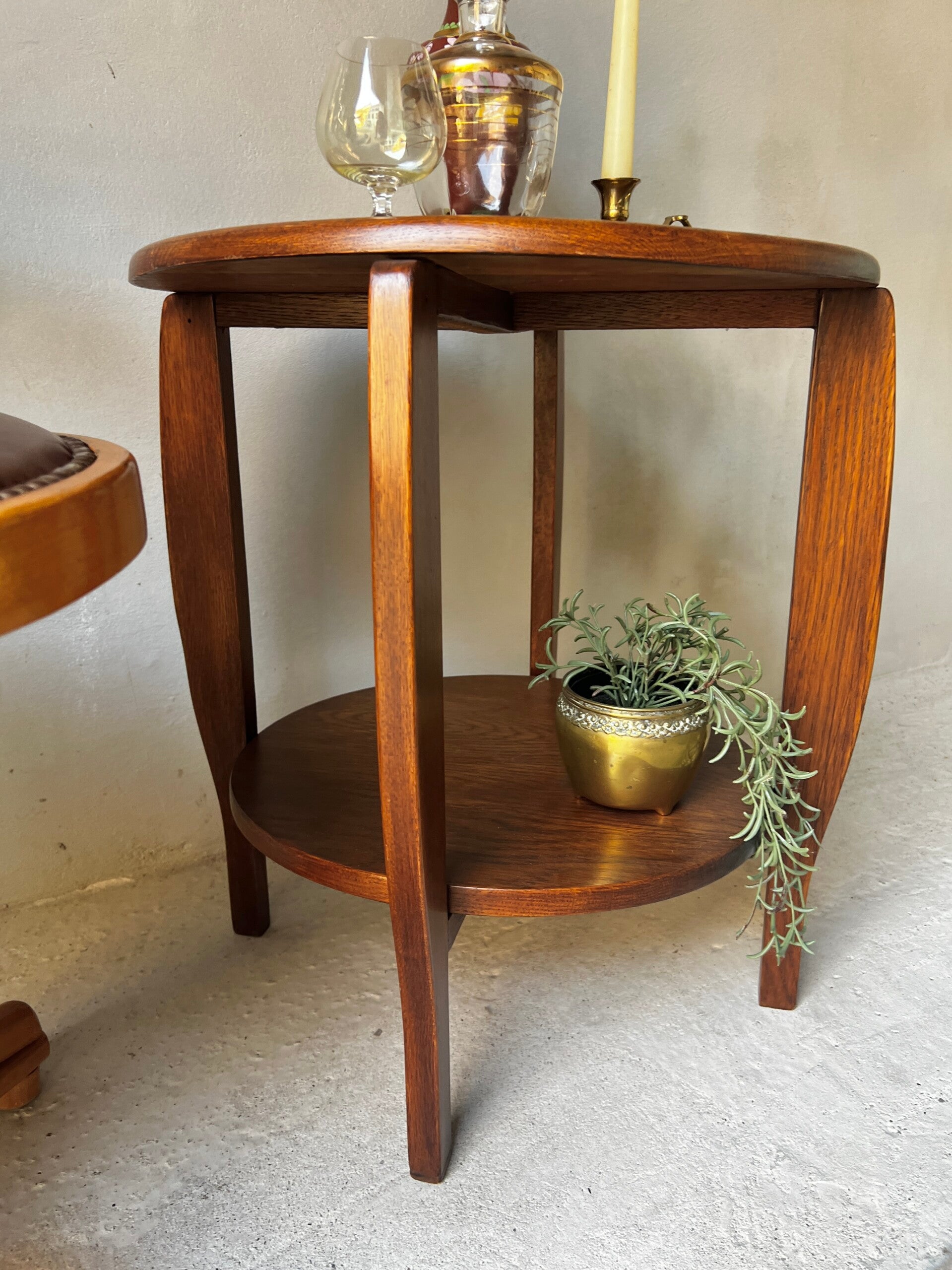 Heel leuk Amsterdamse school bijzettafeltje, het tafeltje heeft mooie Art deco vormen en is een ontwerp uit de jaren 30.