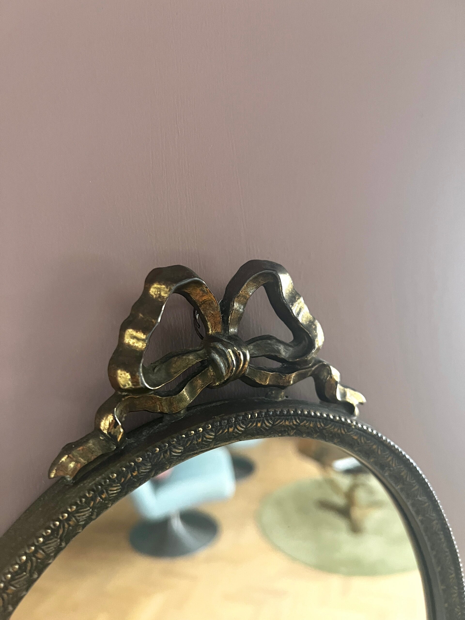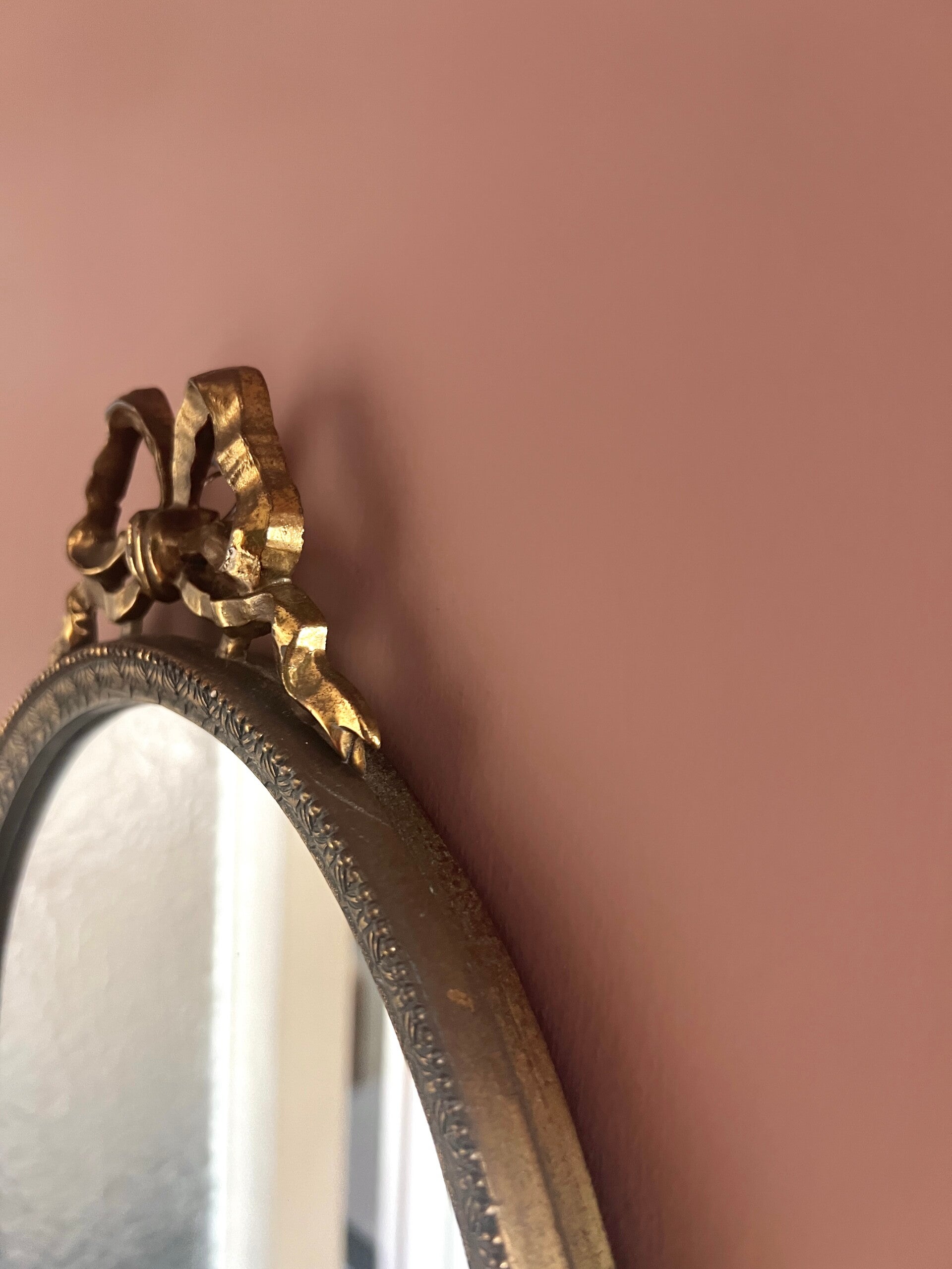Mooie sierlijke spiegel met striklijst en prachtig facetgeslepen glas. Een mooie blikvanger voor aan de muur🤩