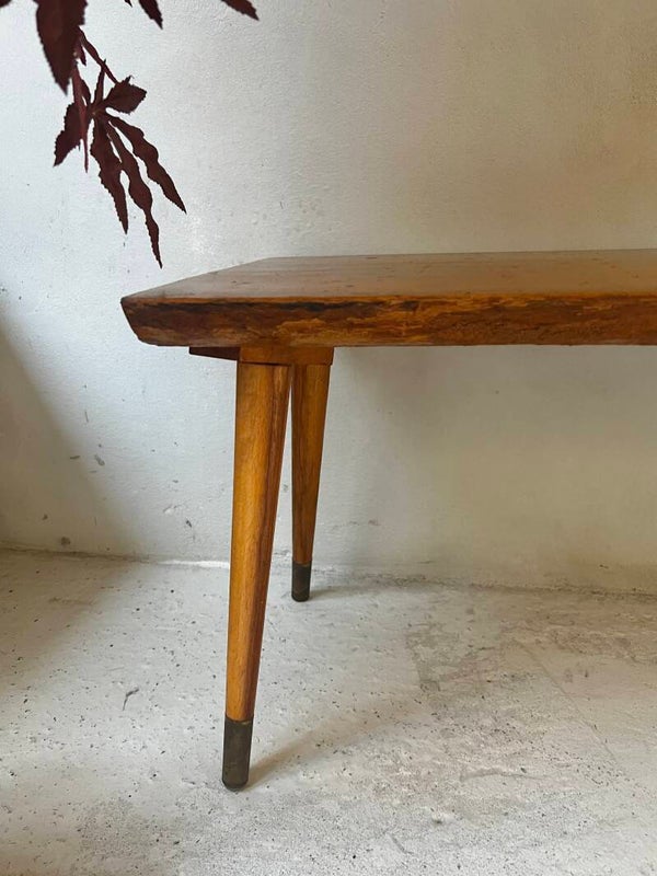 Vintage bankje op ranke pootjes met messing sokjes jaren 60