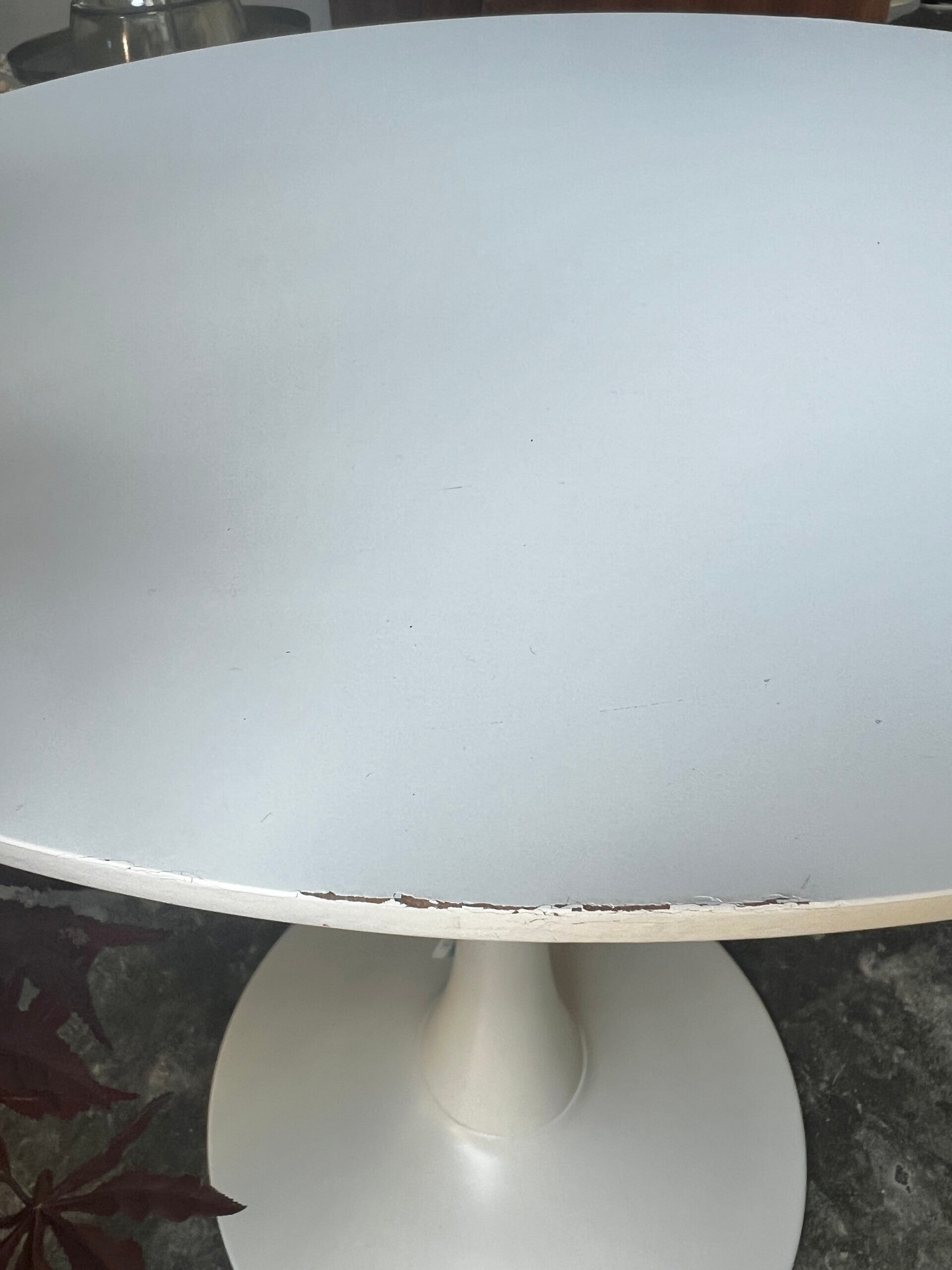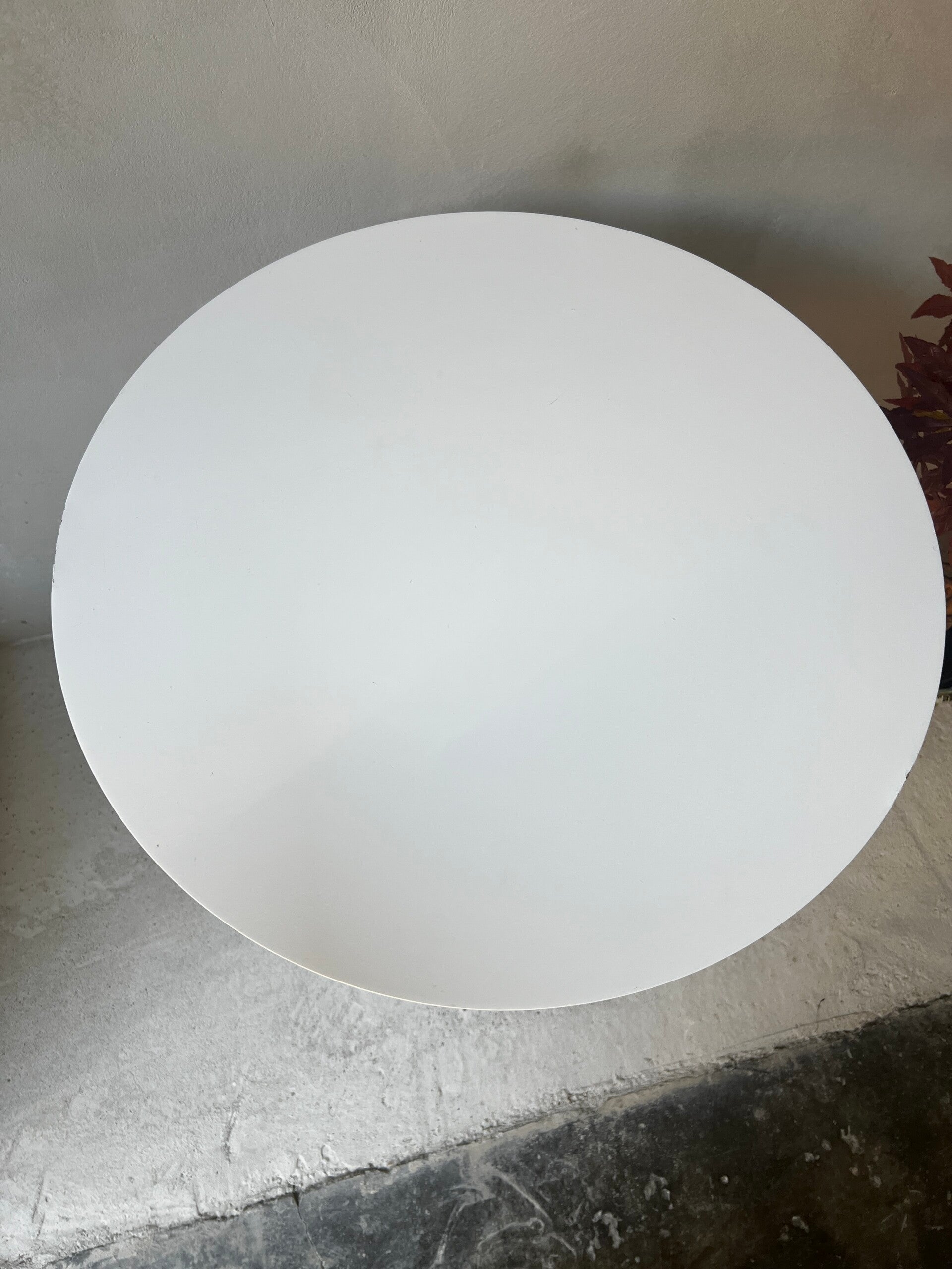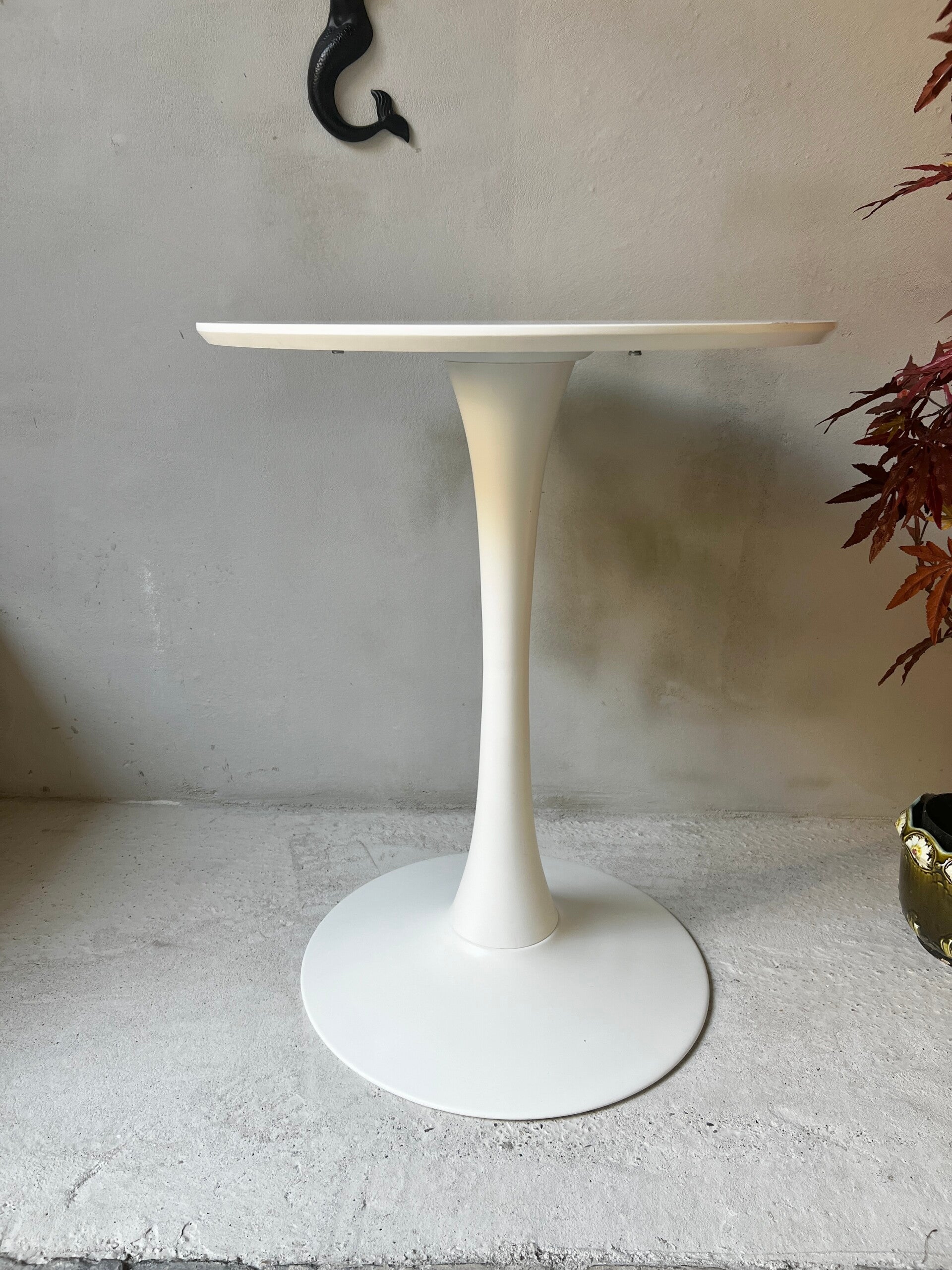 Leuke Tulip model tafel, gemaakt met een stevig rond mdf tafelblad en een compacte stalen poot. Vintage design maar nog steeds modern. Perfect meubel voor 2 personen.