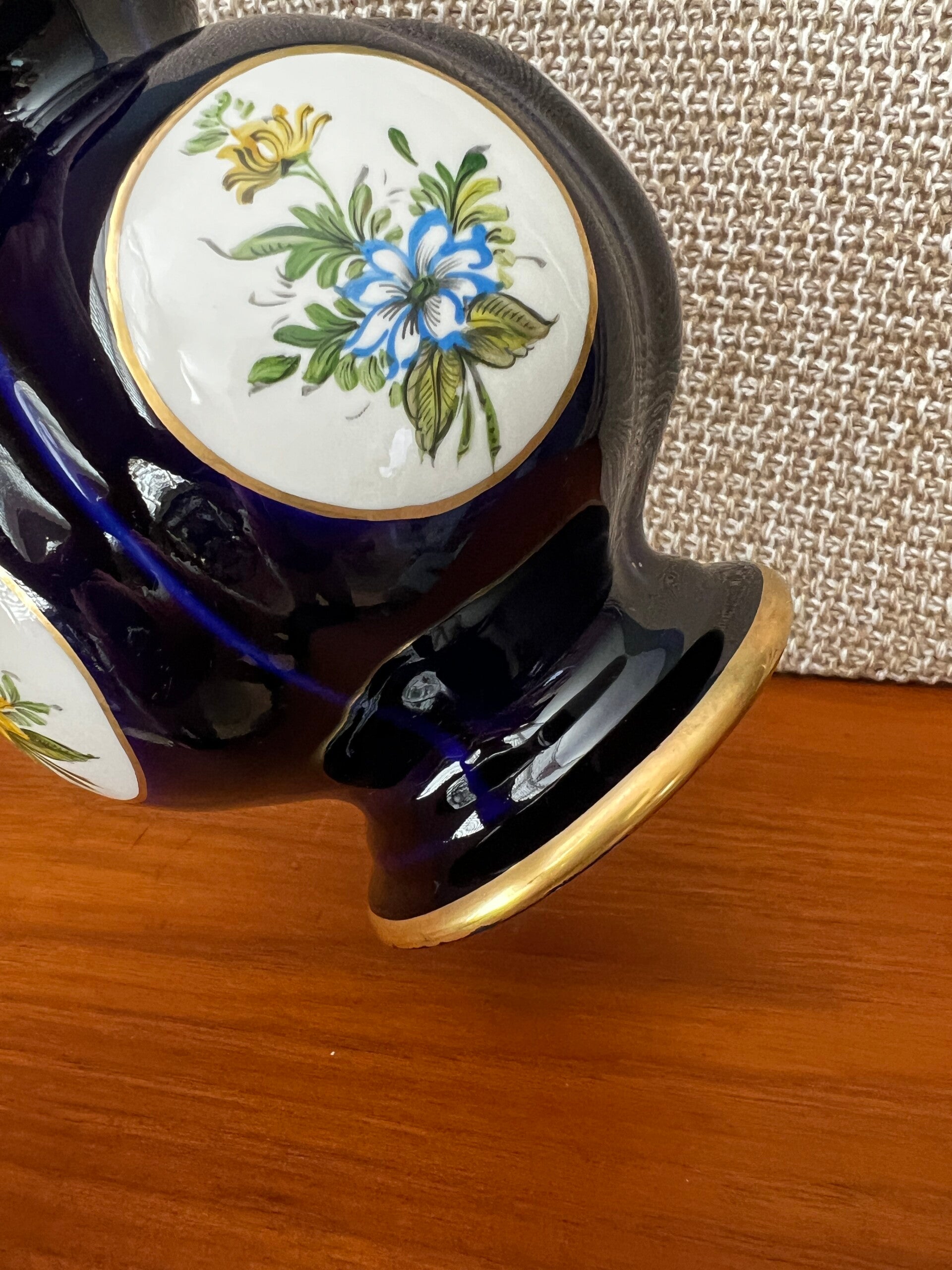 Hele mooie blauwe Franse vaas van Richelieu peiut. Het sierlijke bloemendecor maakt deze vaas tot een pracht stuk.