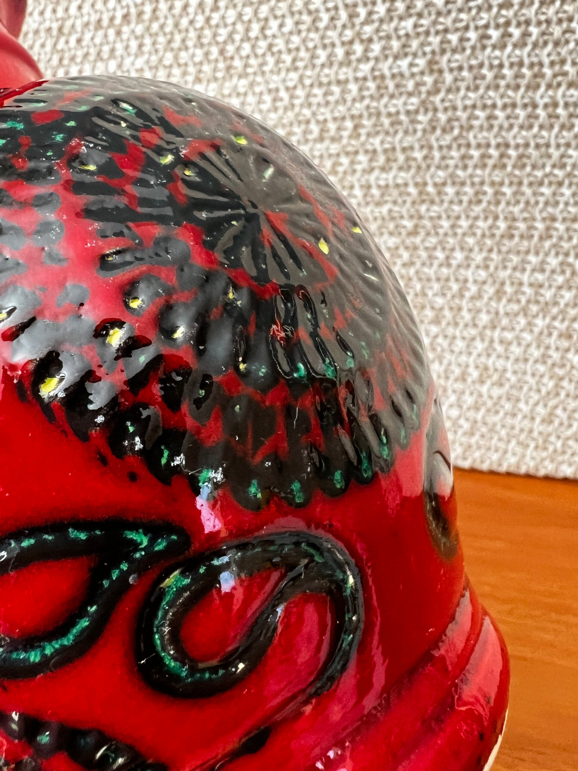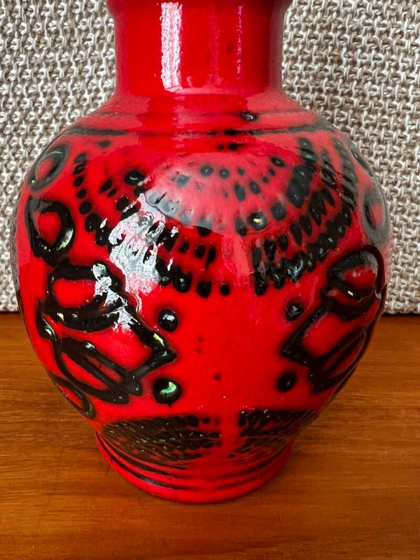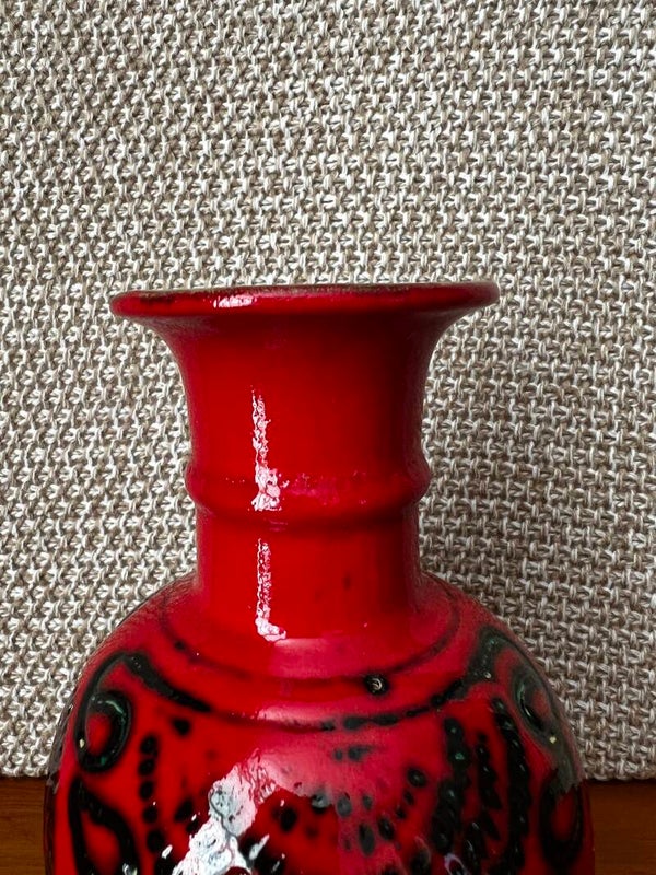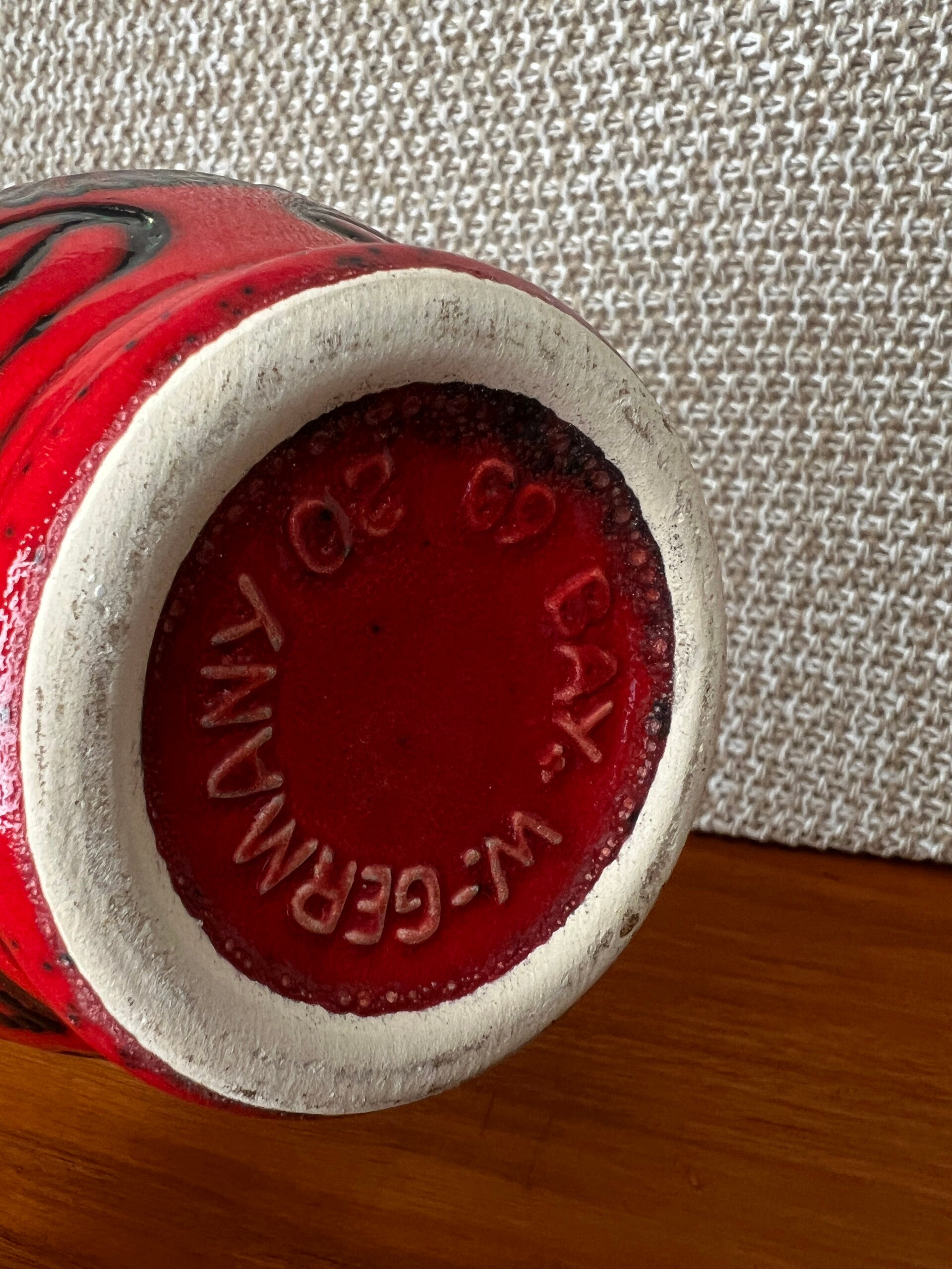 West-Germany vaas van Bay 69-20 geglazuurd in de kleuren rood en groen.