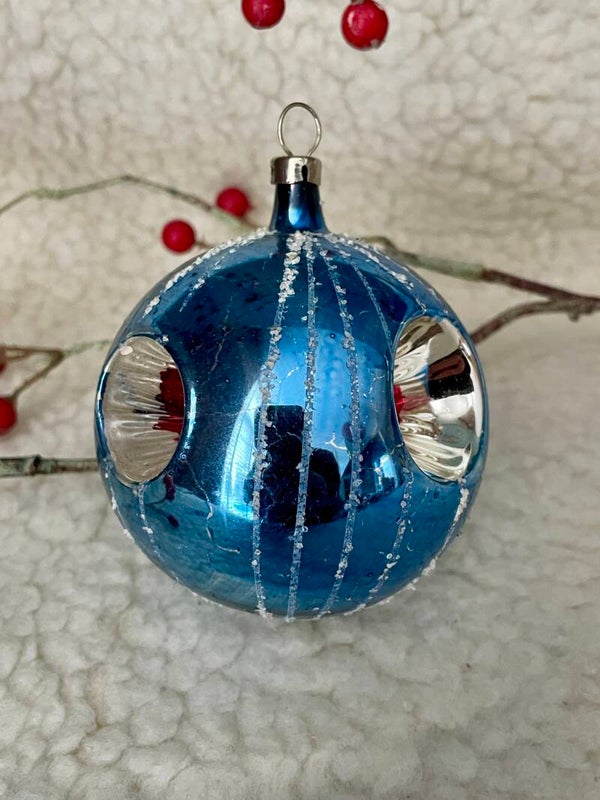 Oude Deukbal 3 Deuken Blauw 7cm Diameter 9cm hoog