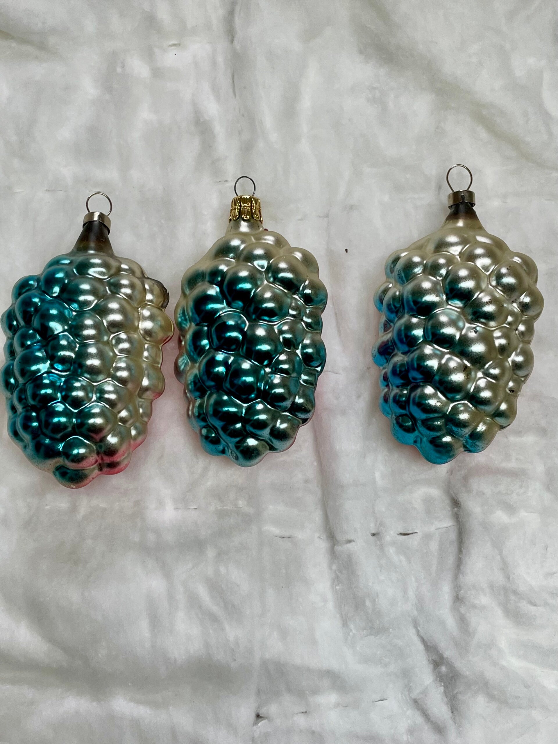 Set van 3 Antieke Kerst Vormballen Druiventros Lauscha