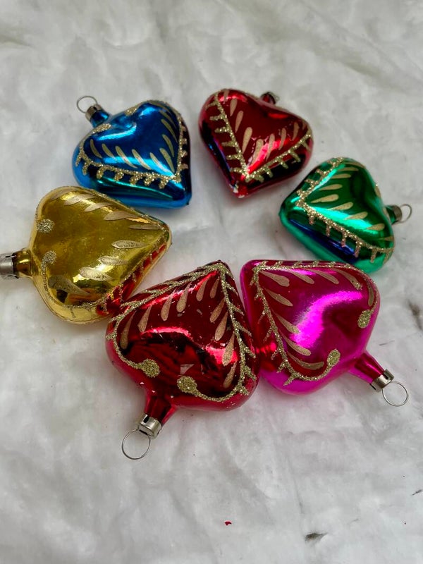 Set van 6 Oude Kerstballen Hartvormig Tsjechië