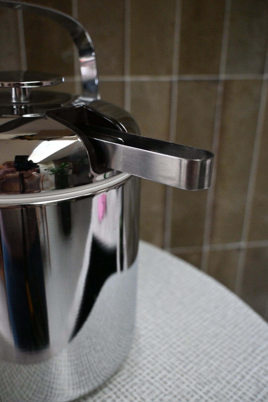 Cocktails maken in stijl doe je zeker met dit ijsemmertje van zilverkleurig metaal.Gemerkt Elephant met handige klontjestang in de deksel👌🏻