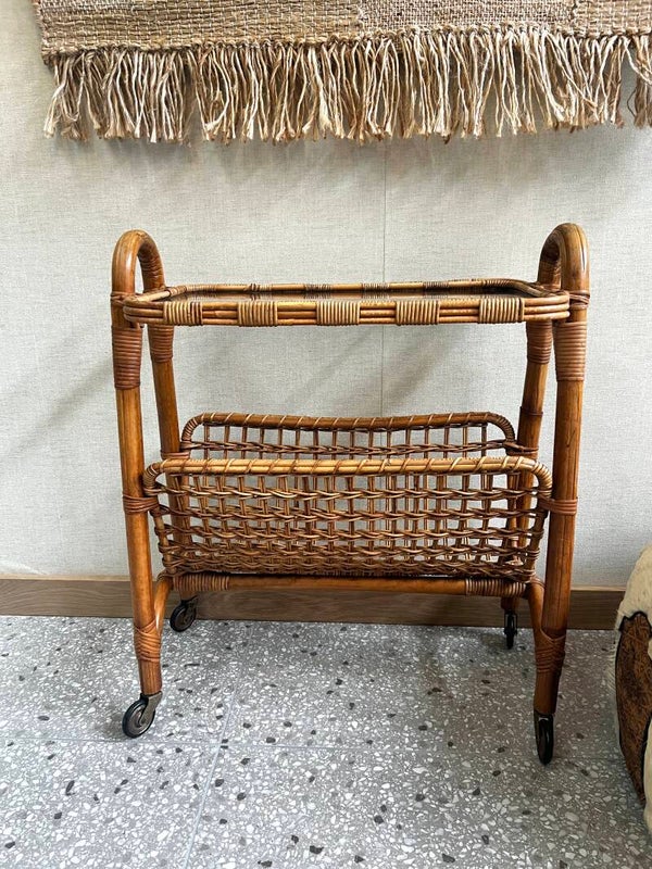 Hele leuke rotan tijdschriften trolley, handig 2 in een want je kunt hem gebruiken als bijzettafeltje. Super leuk naast je bank of in een hoekje. Ook mooi met een plant erop.