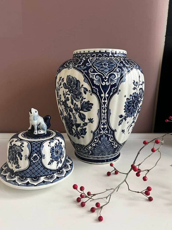 Hele toffe grote Boch, Delfts Blauwe dekselvaas, helemaal gaaf werkelijk een plaatje om te zien. Ook leuk met een bosje bloemen erin😍