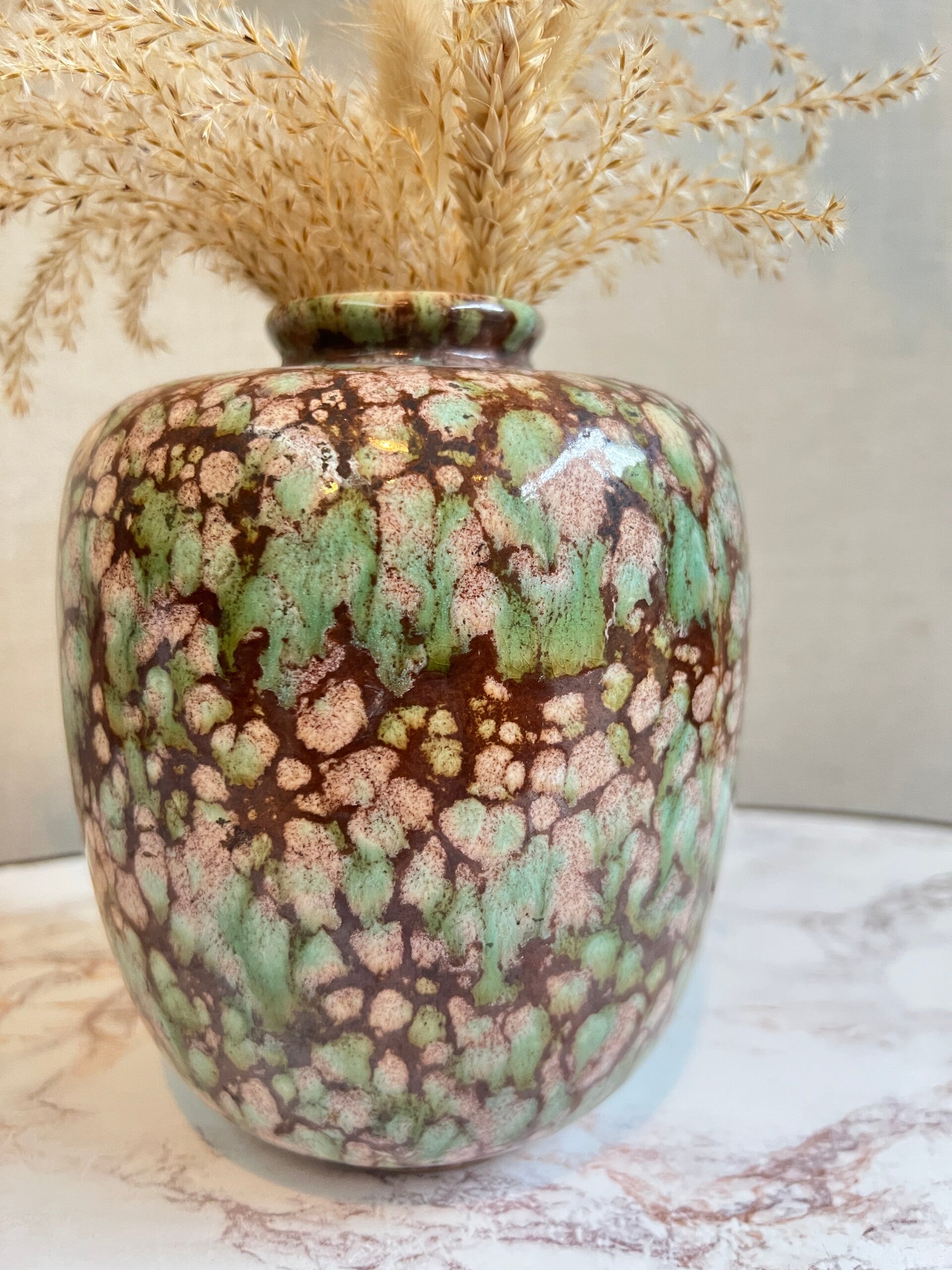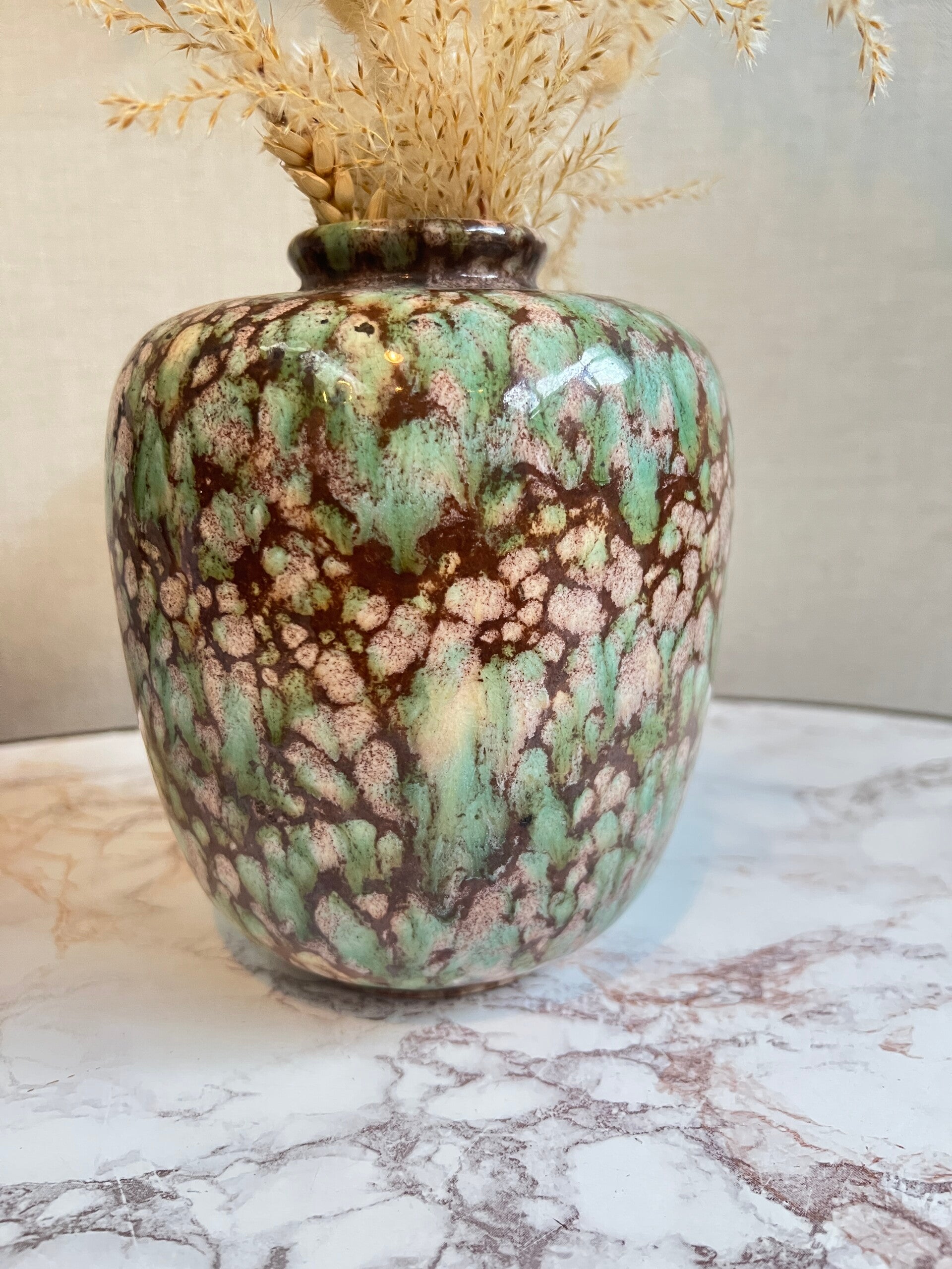 Mooie gemarmerde vaas van Jasba West Germany. De vaas is geglazuurd en verkeerd in een goede staat, geen chipjes.