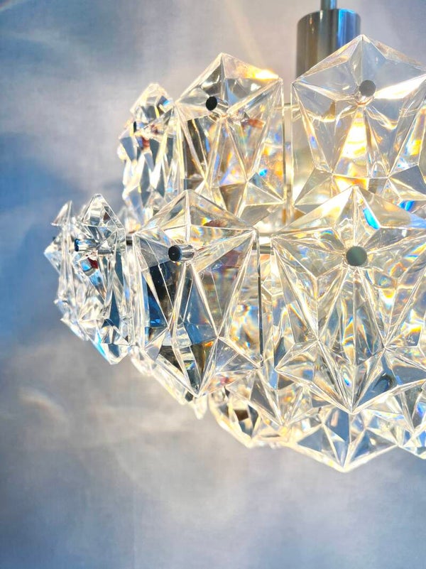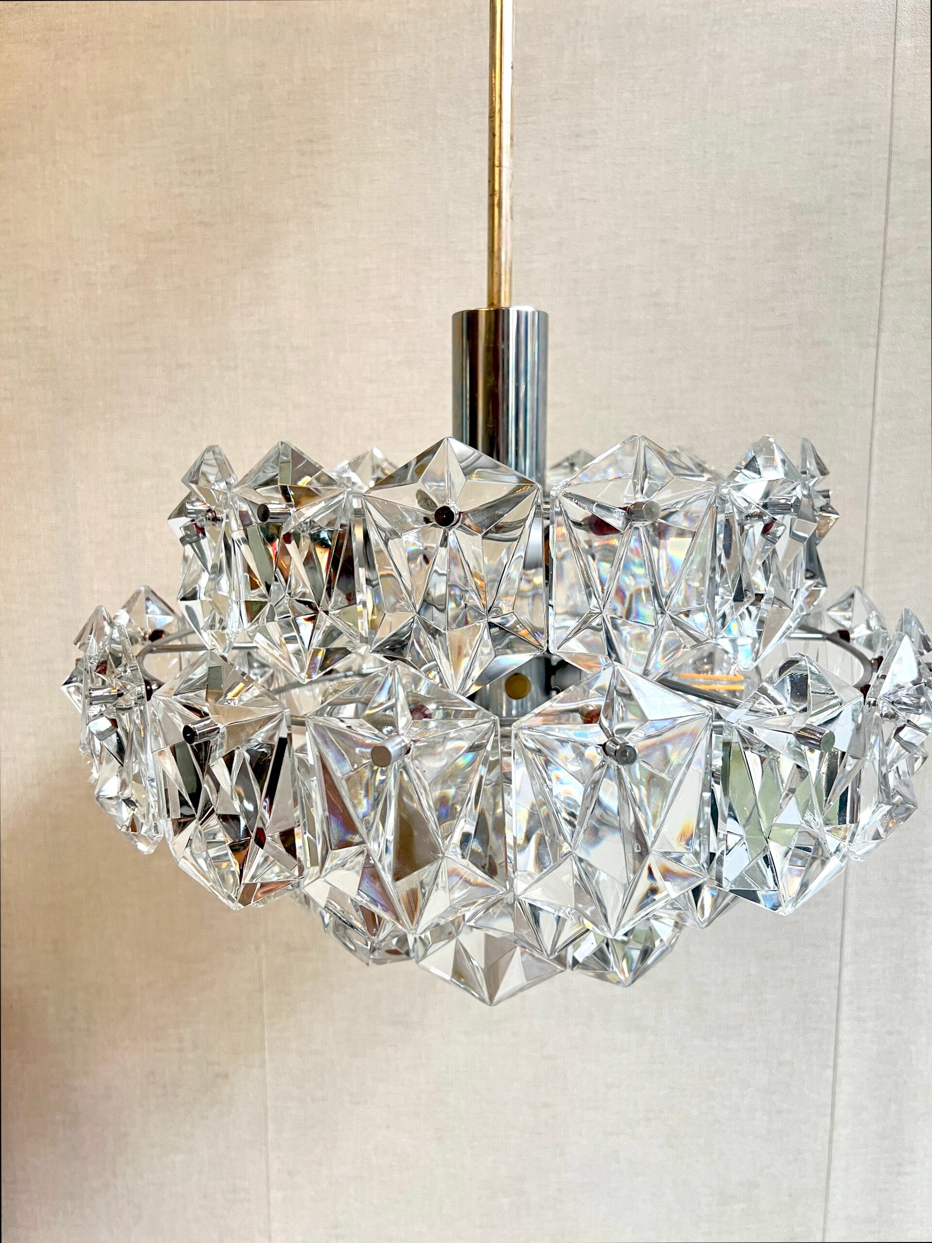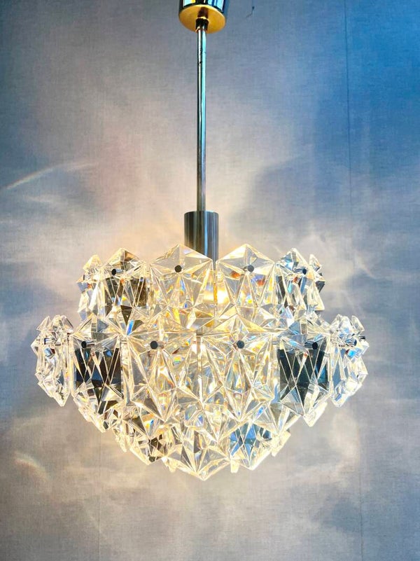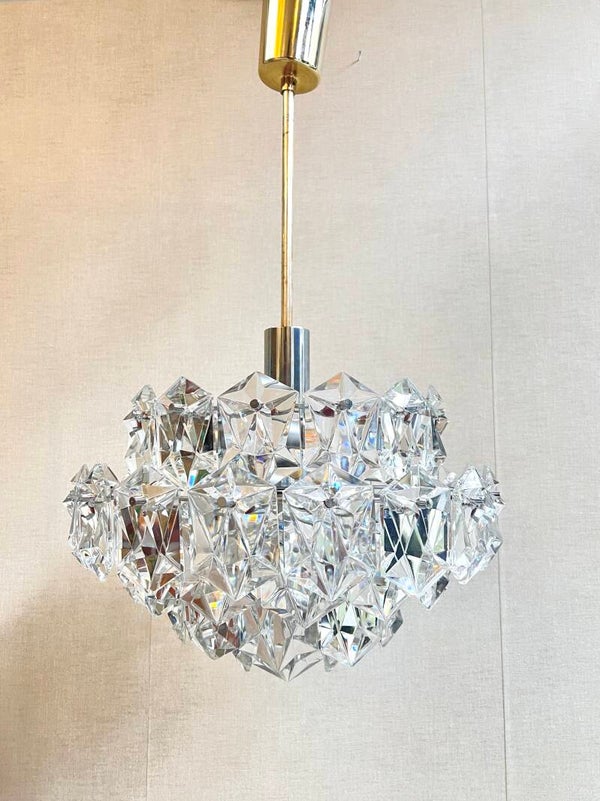 Waanzinnig mooie grote kroonluchter met zware kristallen hangers in 4 lagen. De kroonluchter is van het kwaliteitsmerk Kinkeldey