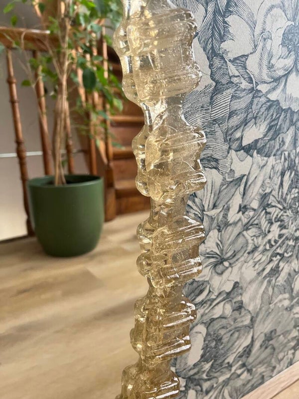 Deze acryl spiegel afkomstig uit de jaren 70 is wel heel apart te noemen. Door de interessante vorm heeft het ook een artistieke uitstraling.