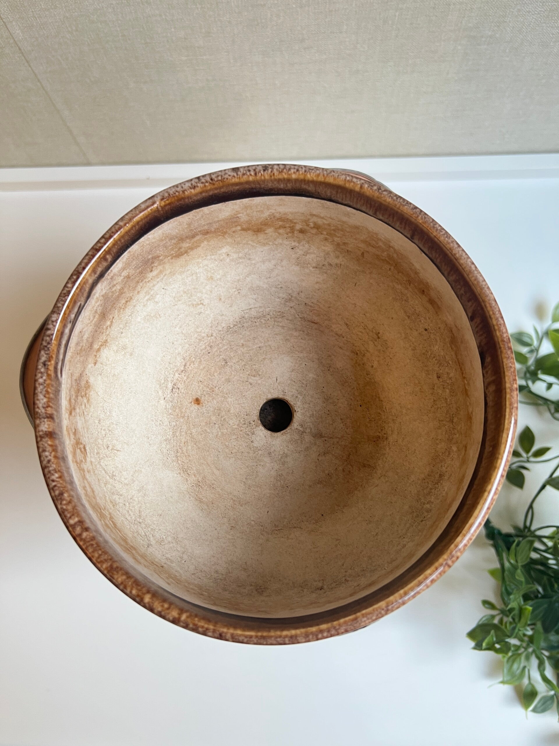 Hele mooie vintage bloempot, prachtig geglazuurd in de kleuren bruin/lichtbruin.