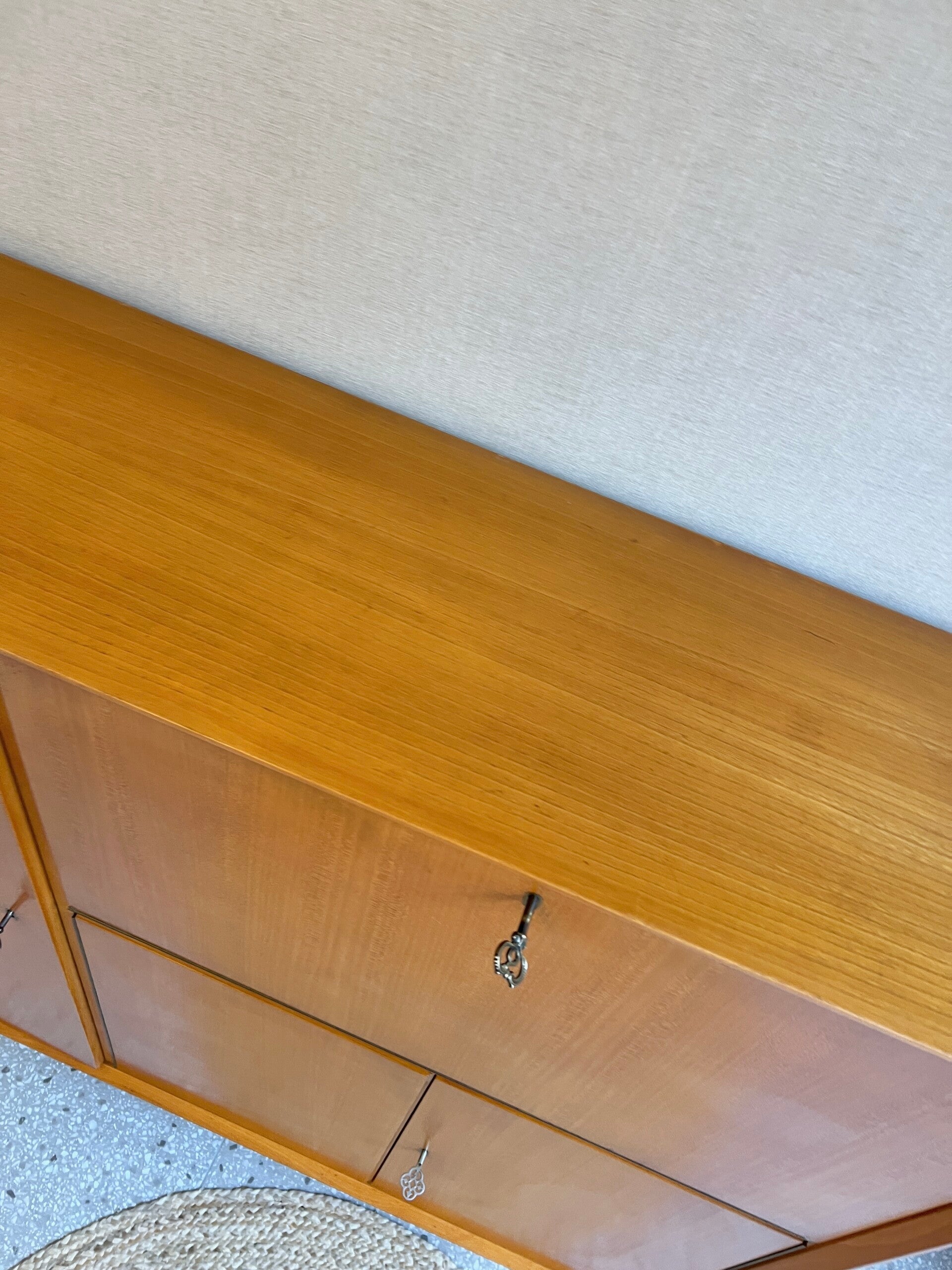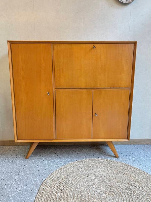 Jaren 60 Highboard met secretaire in beukenfineer uitgevoerd.