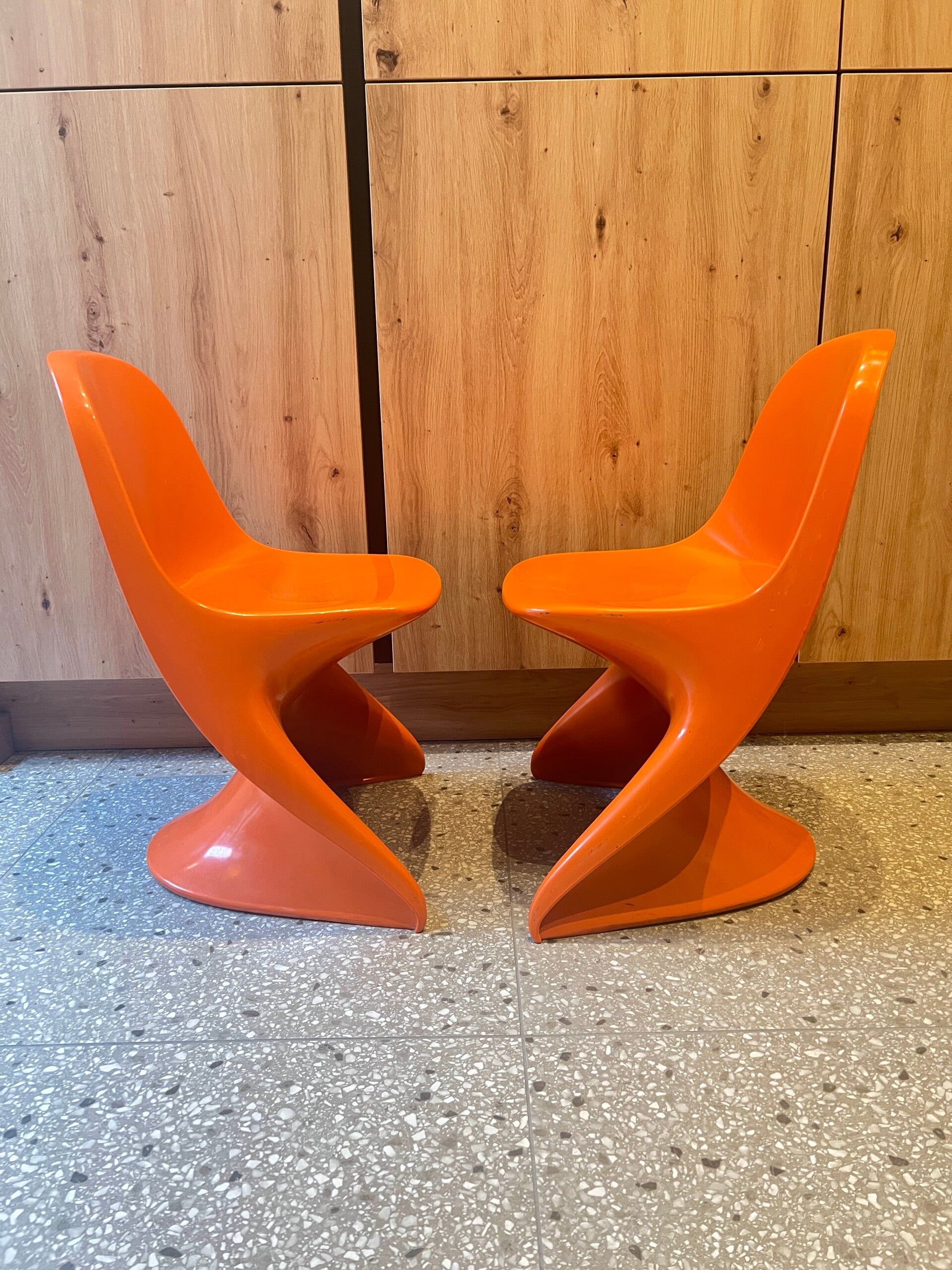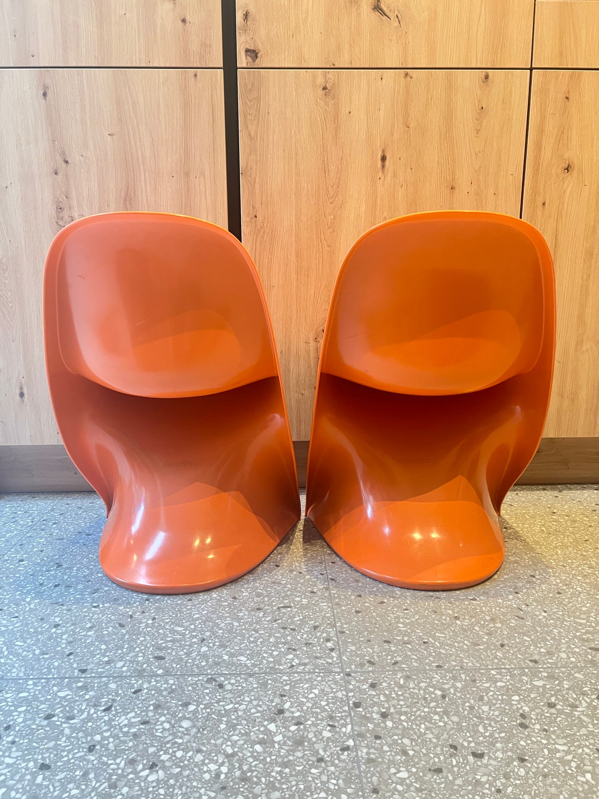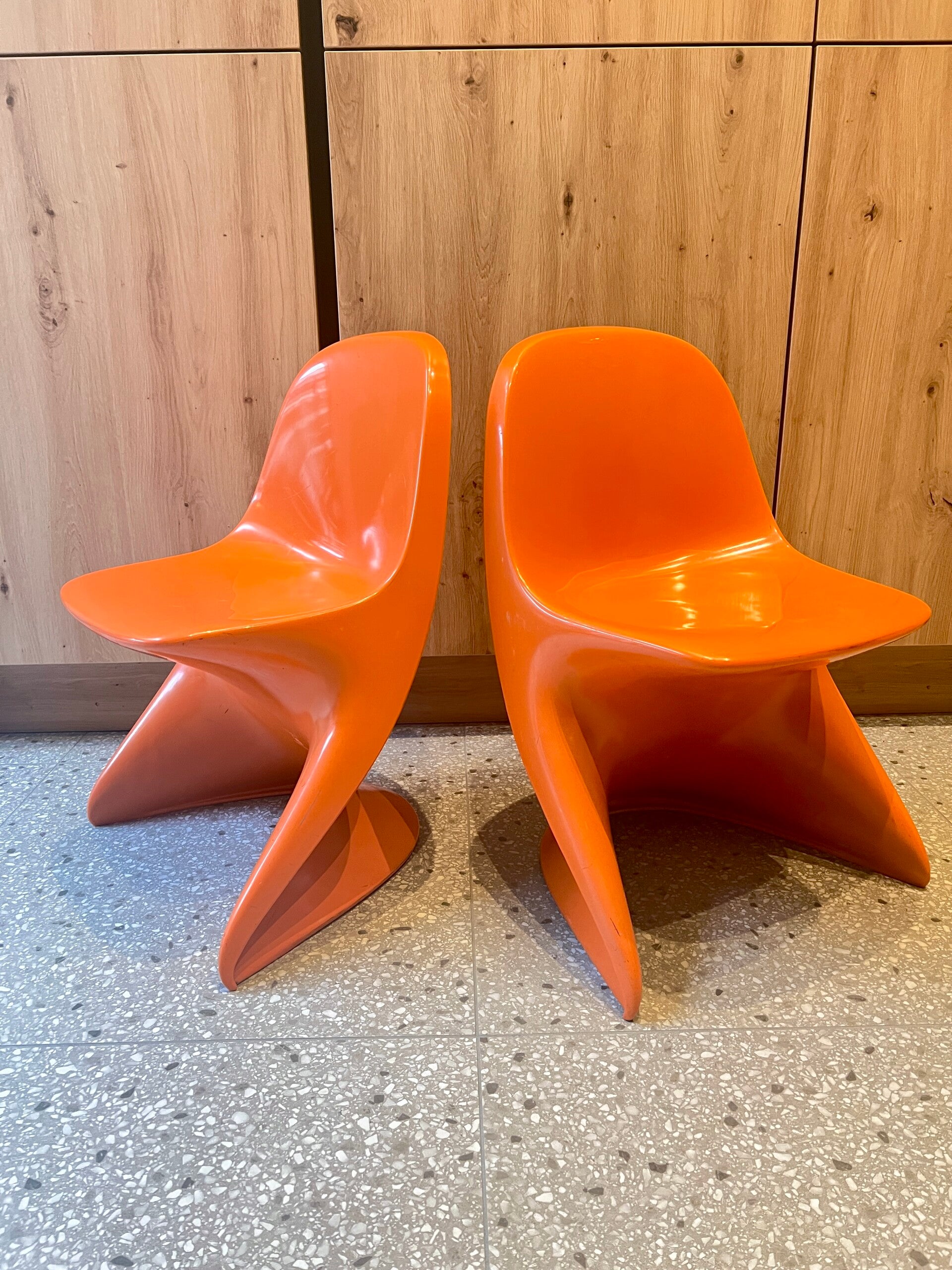 De Casalino stoel is in 1970 ontworpen door Alexander Bregge. Mooi herkenbaar Space Age design in retro oranje.