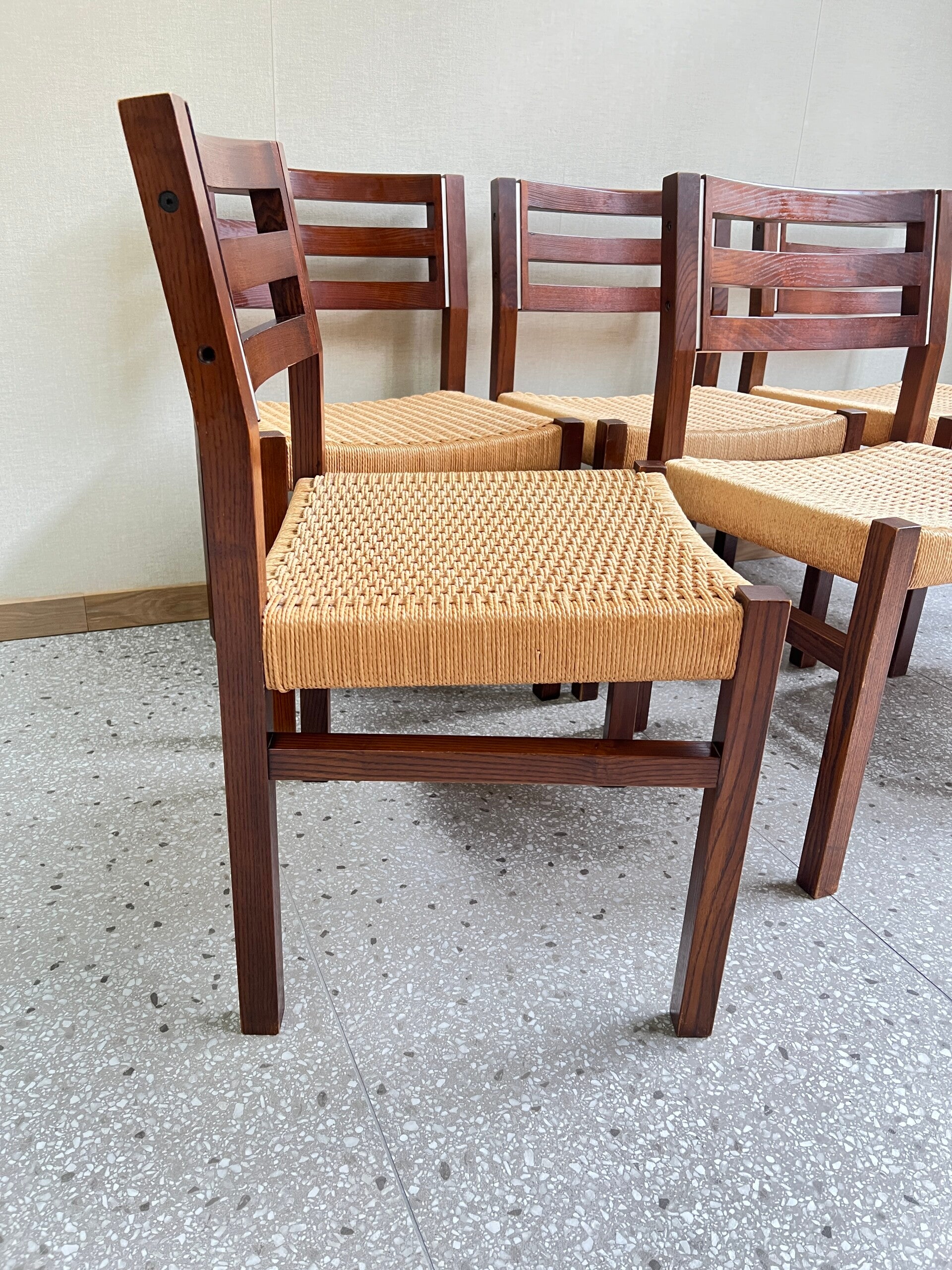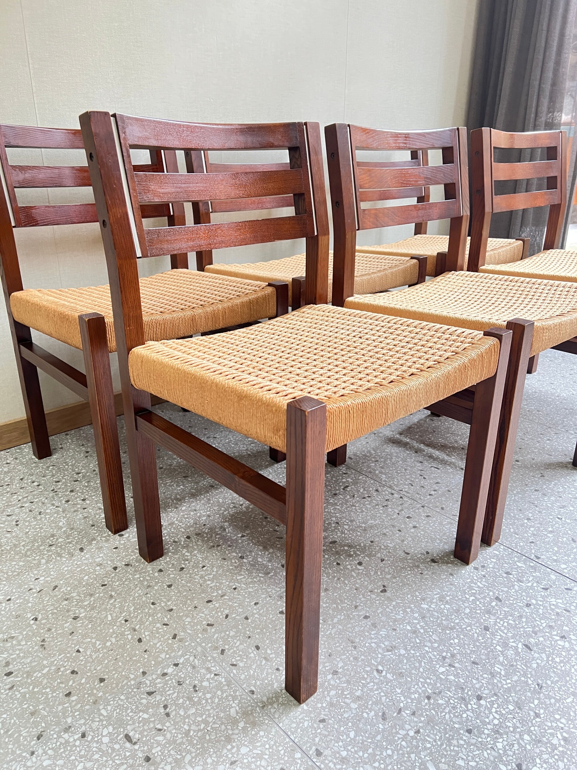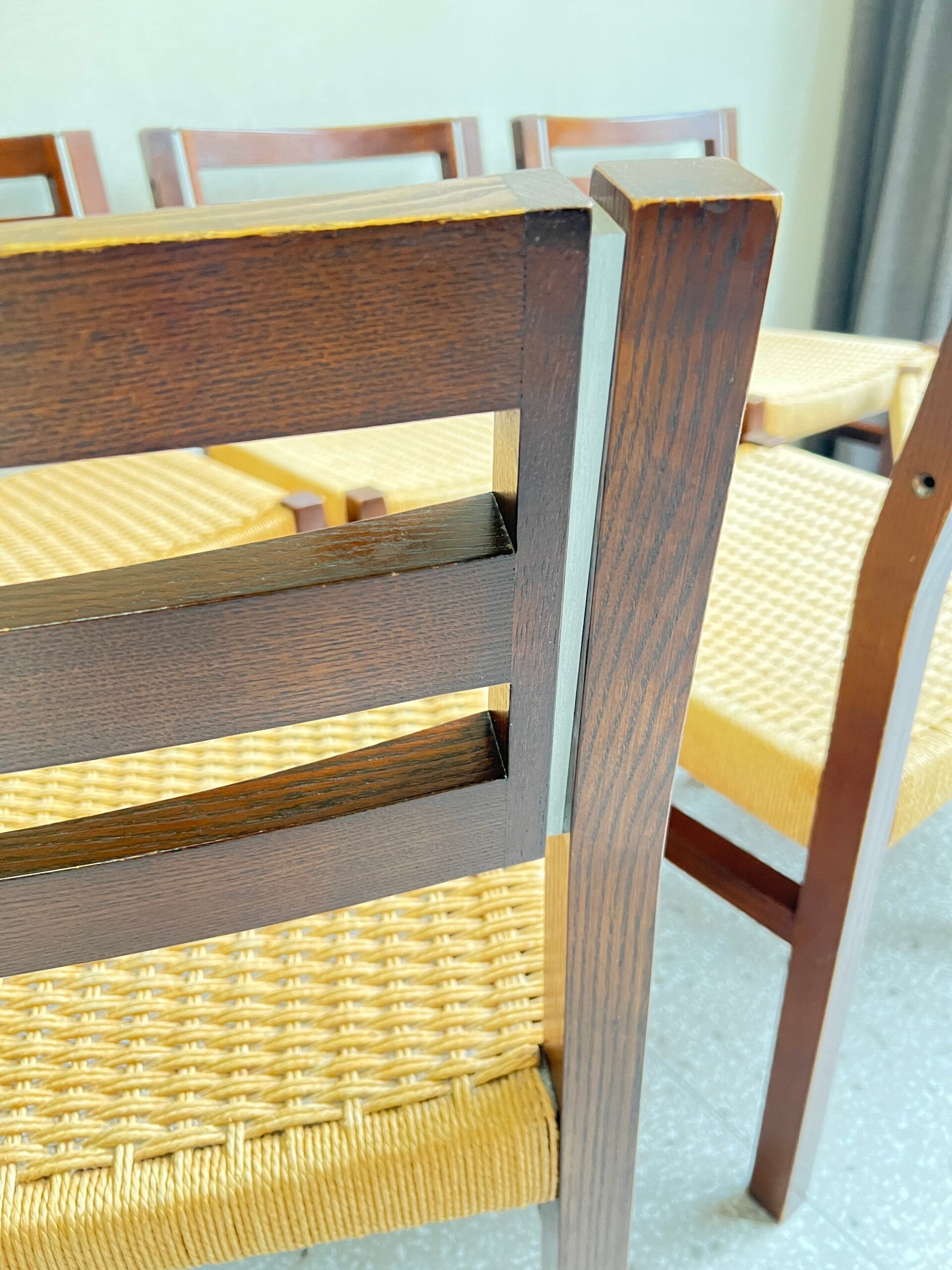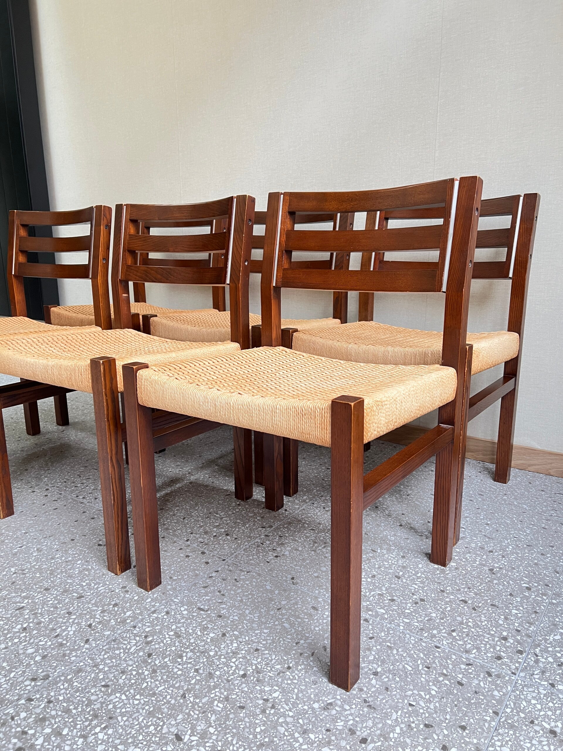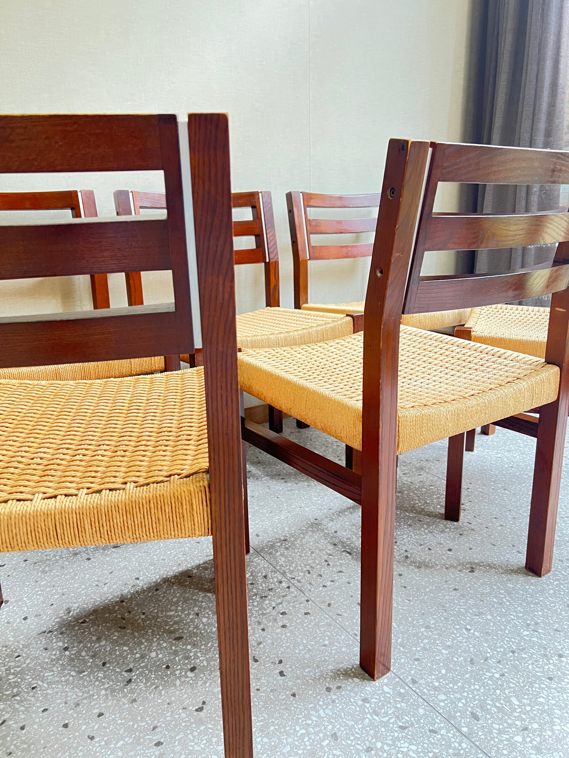 Zes Vintage papercord eetkamerstoelen Arnold Merckx voor Fristho