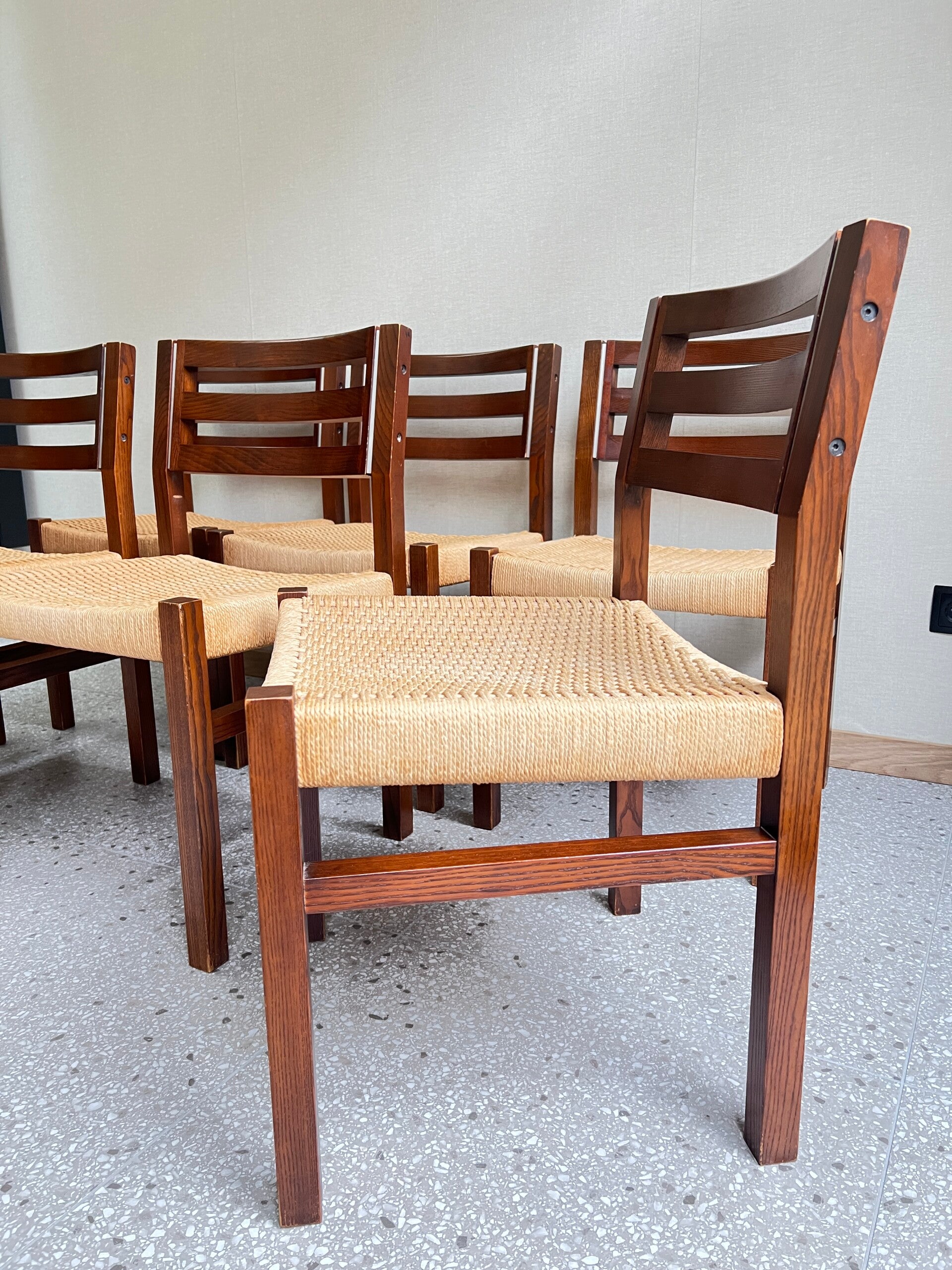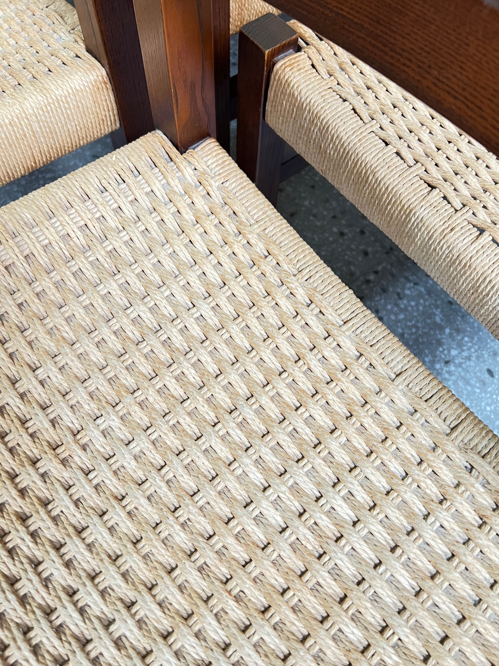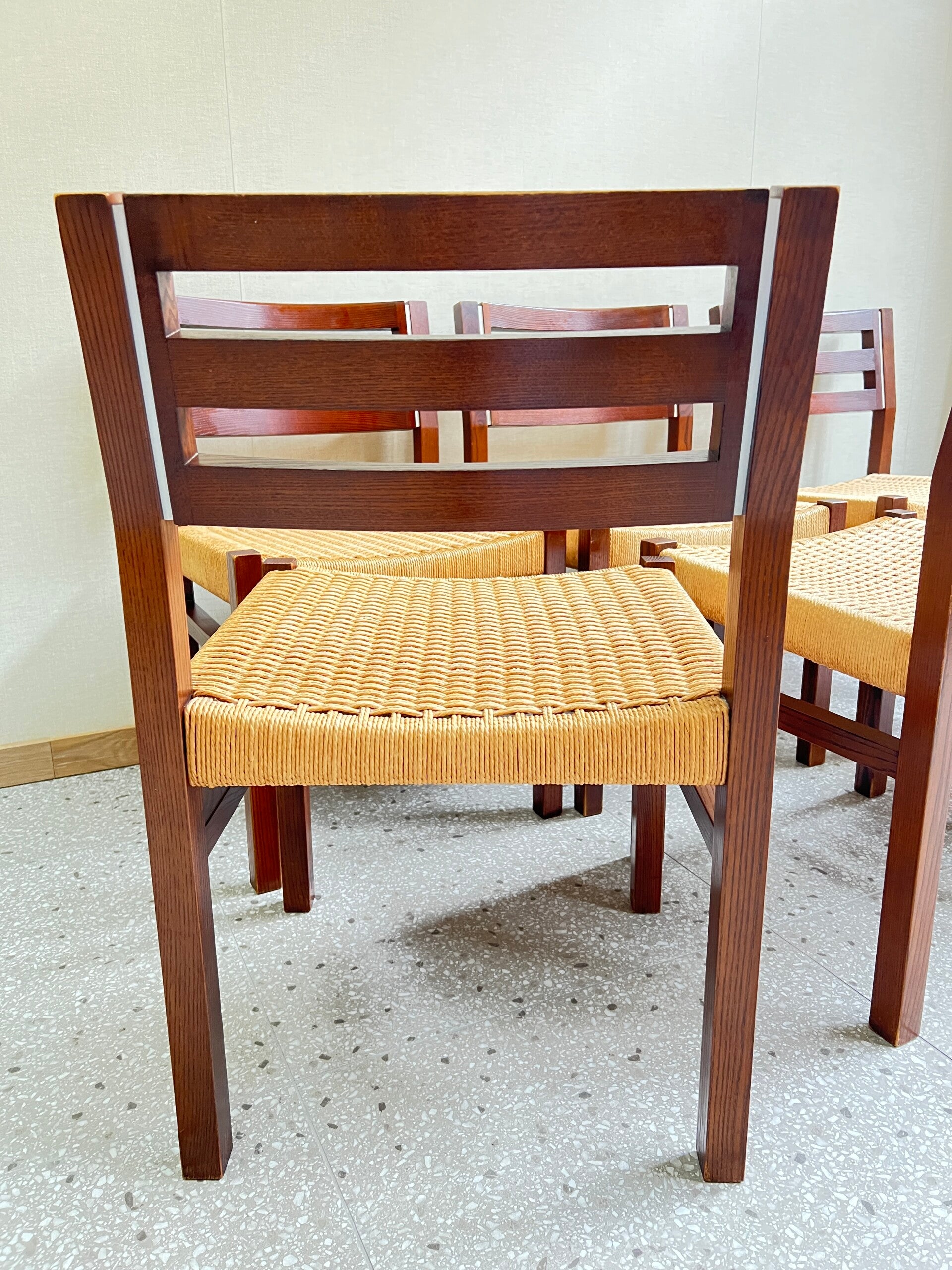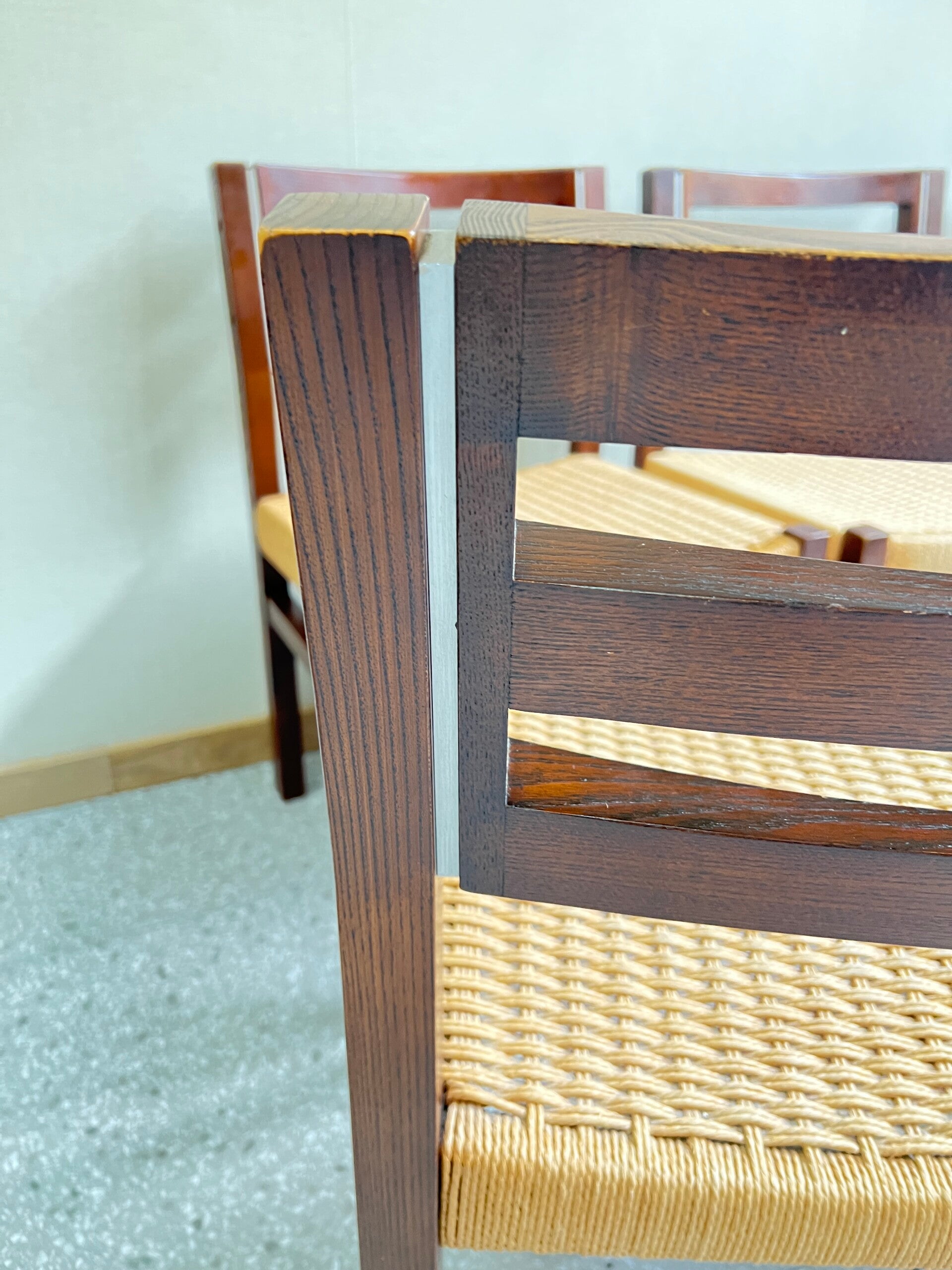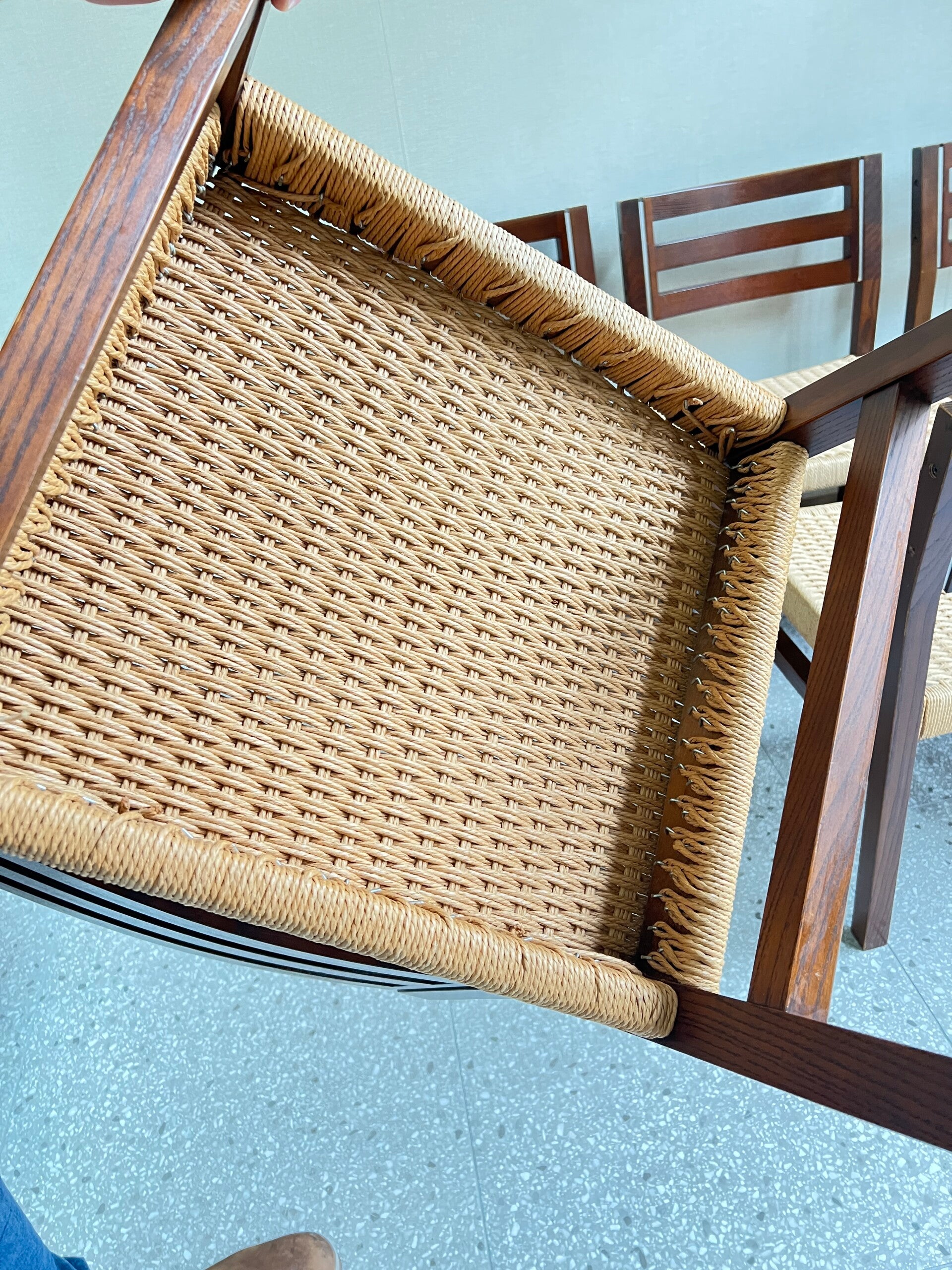 Zes Vintage papercord eetkamerstoelen Arnold Merckx voor Fristho