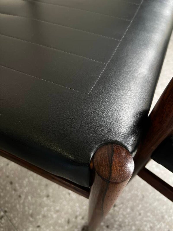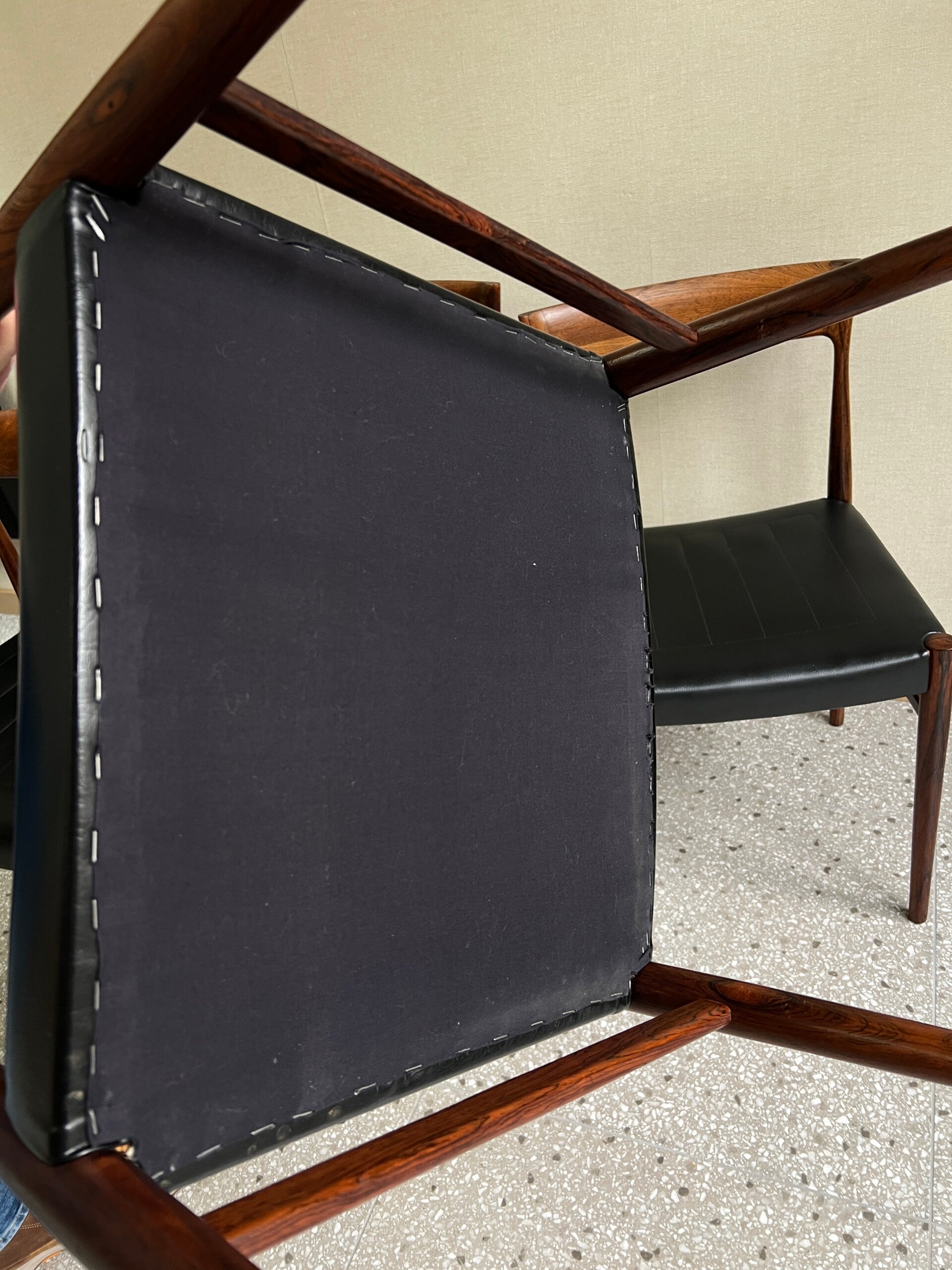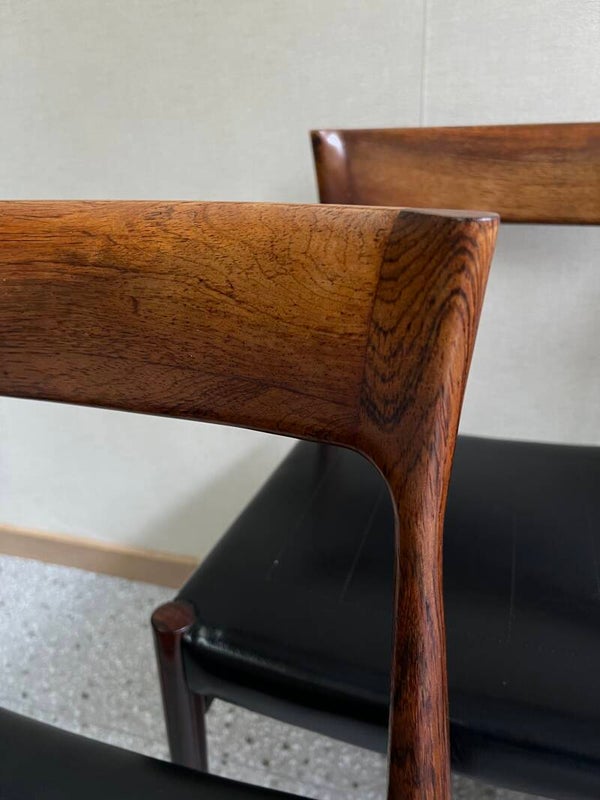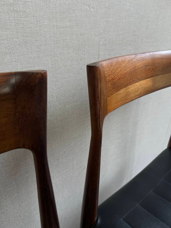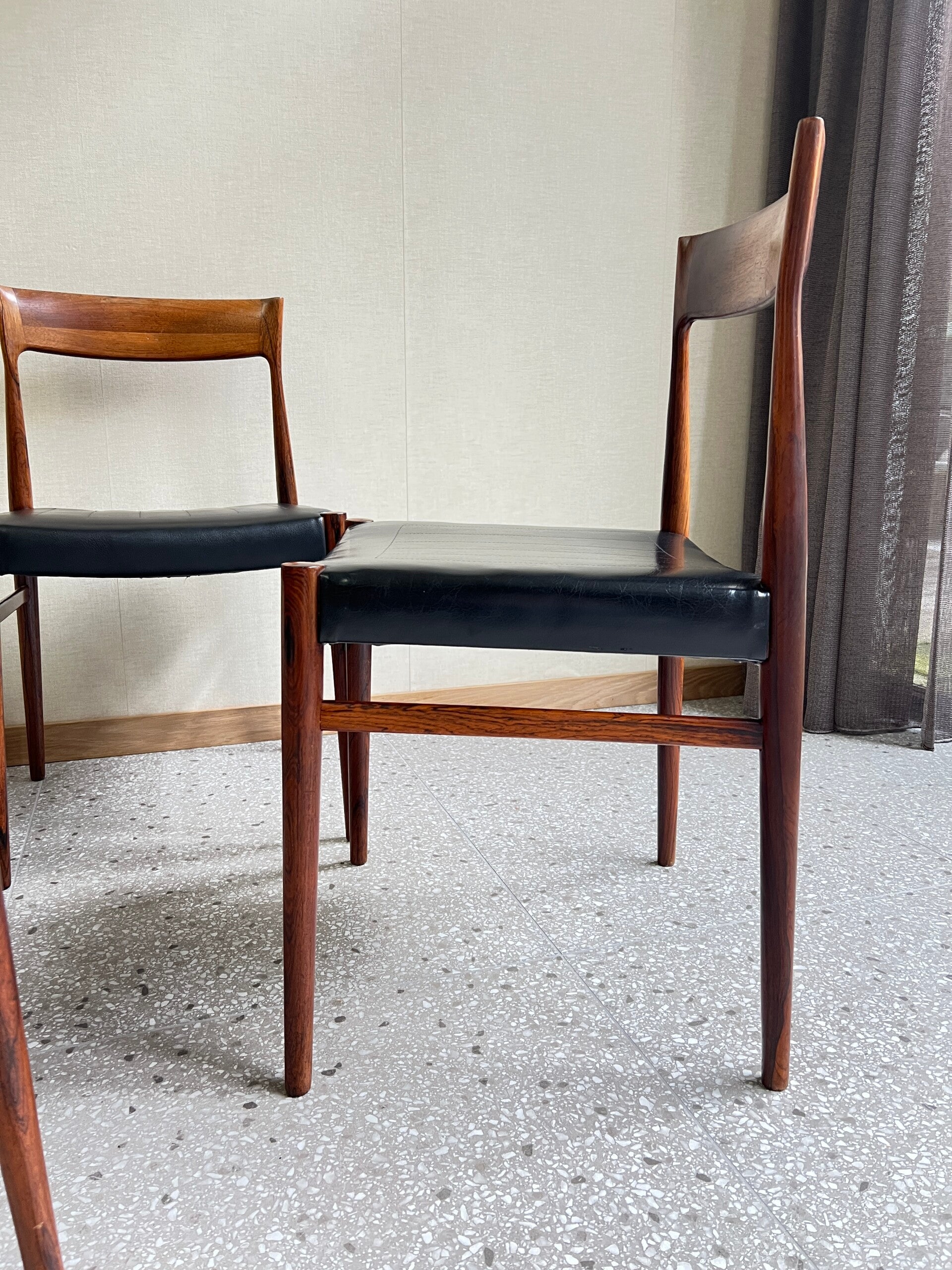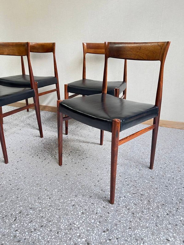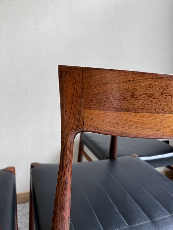 Prachtige Deens design Palissander houten eetkamerstoelen, prachtige strak vormgegeven set van 4 hoogwaardige kwaliteit, Ervaar het comfort en de kwaliteit van deze mooie eetkamerstoelen.