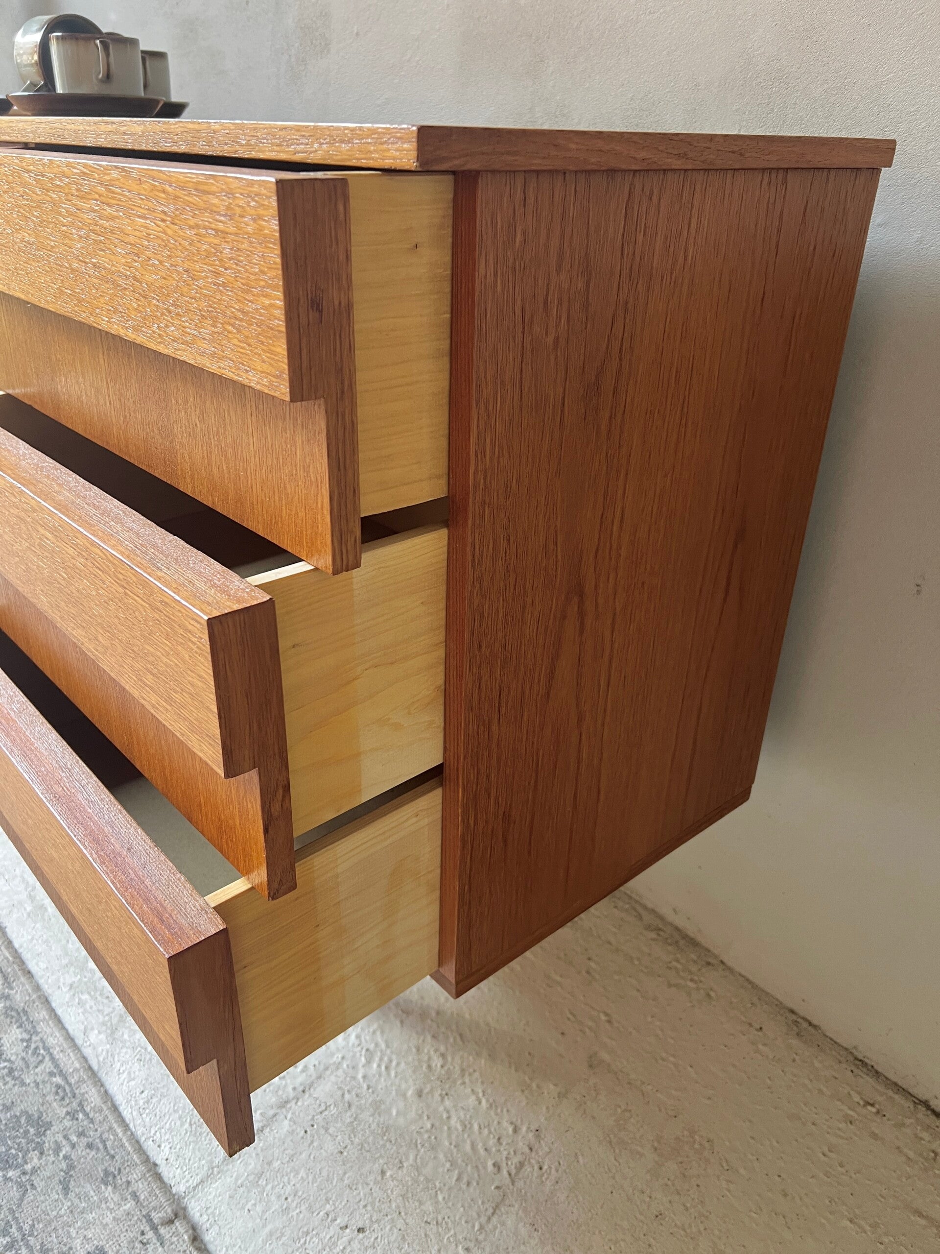 Vintage teak fineer sideboard/dressoir jaren 60 met 3 lades