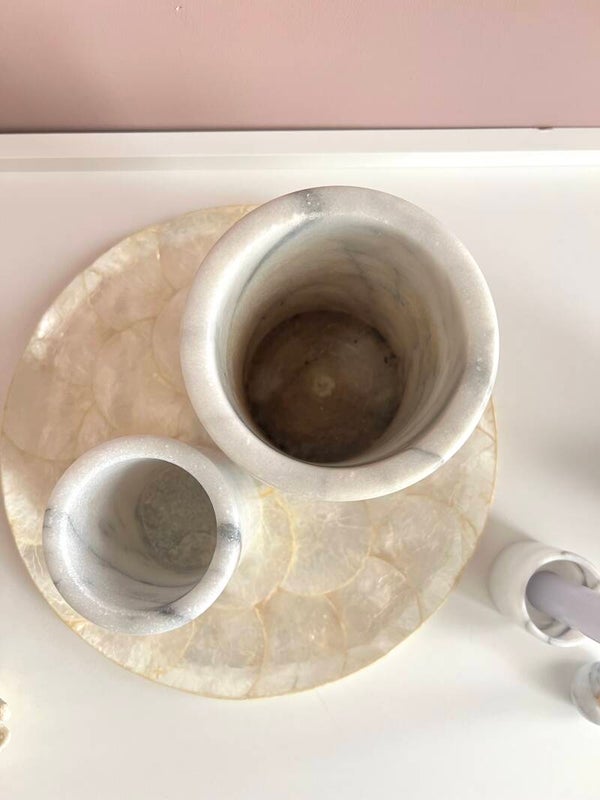 Marmeren decoraties zijn tegenwoordig helemaal hip, we hebben een aantal items voor jullie gevonden. Tevens een mooi capiz schelpen bord leuk bv met de vaasjes💕