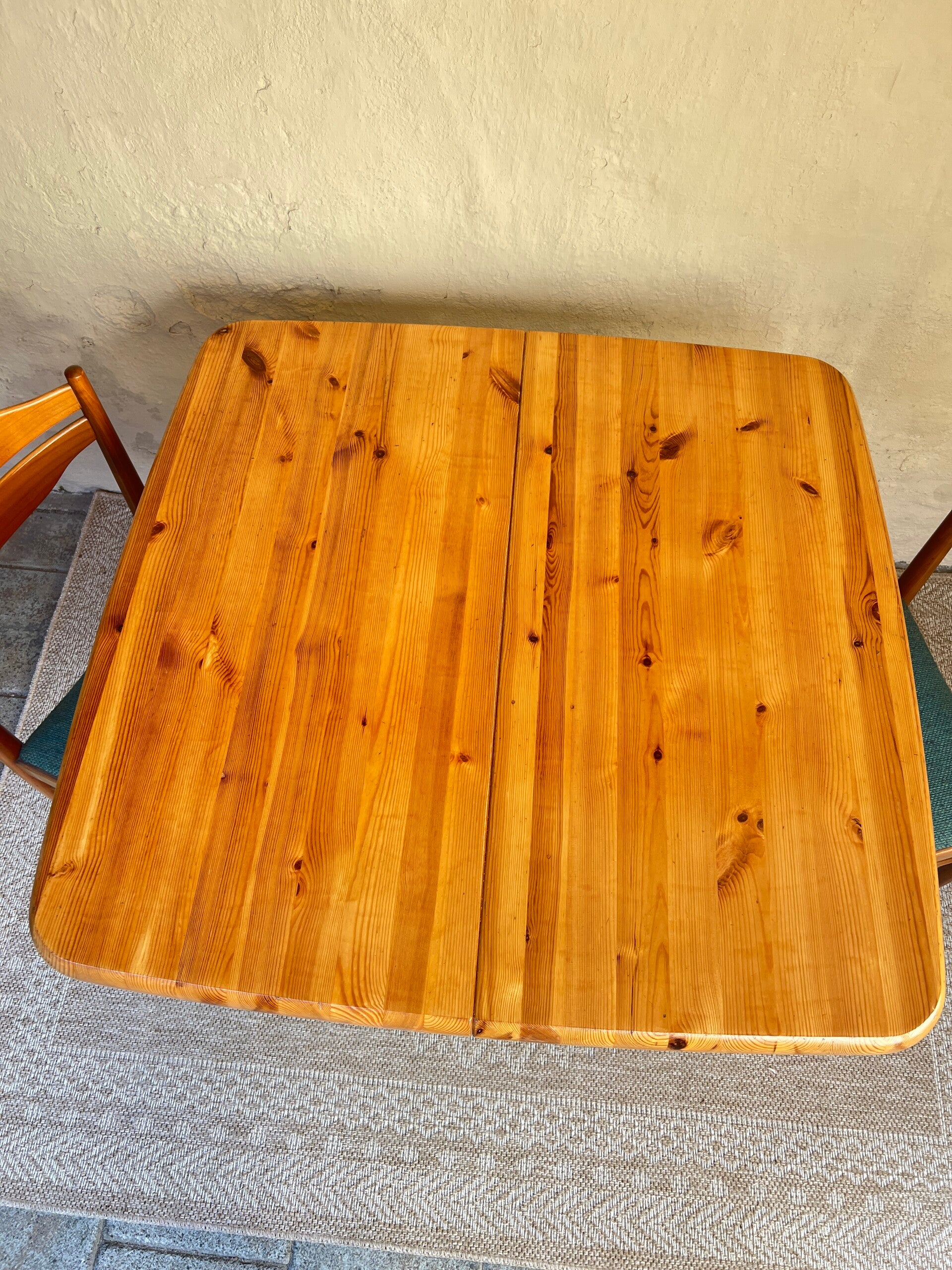 Mooie grenen verlengbare eettafel van Rainer Daumiller. De tafel is verlengbaar d.m.v 2 losse bladen. Eenvoudig groter en kleiner te maken.