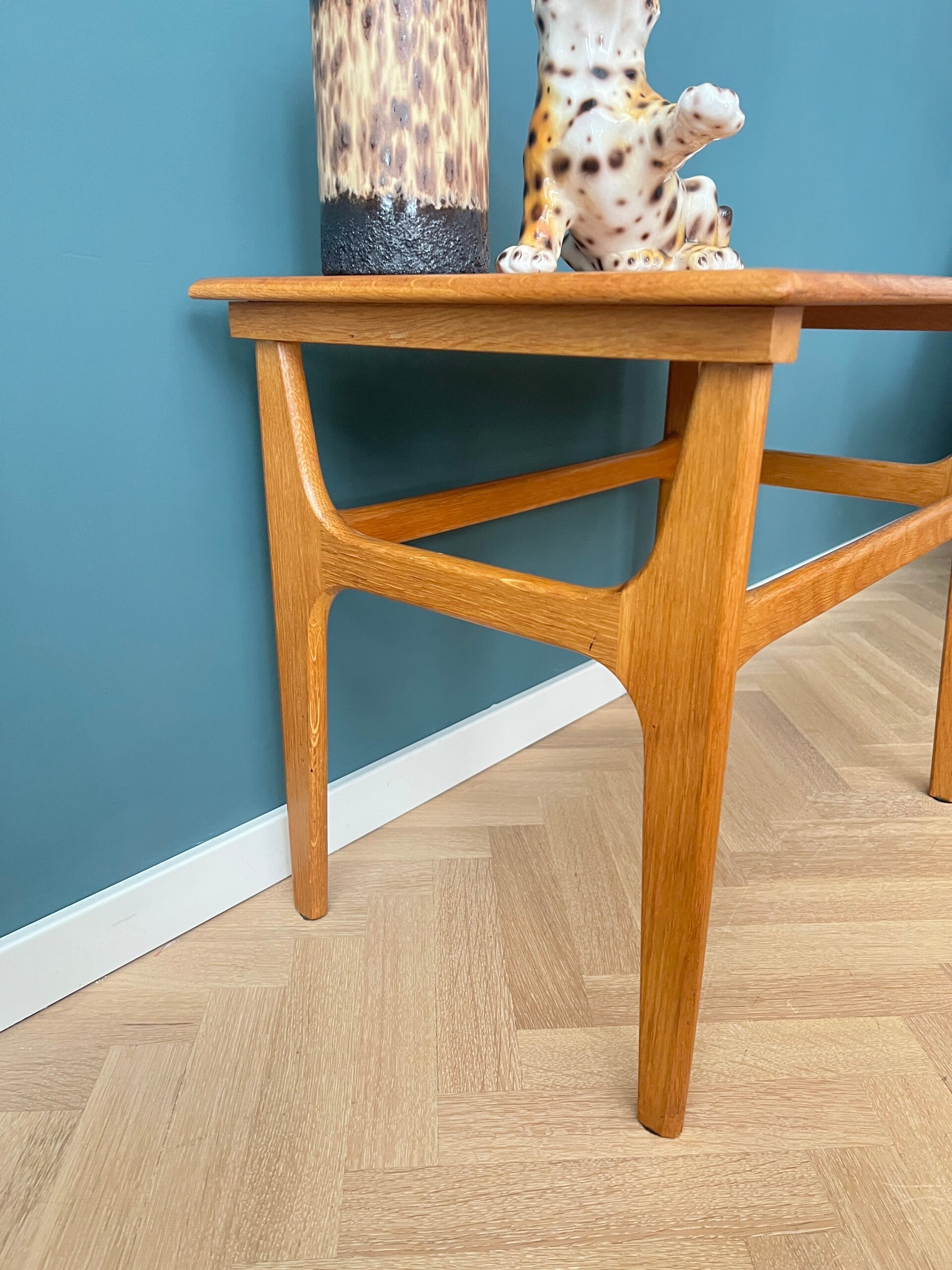 Dit mooie bijzettafeltje van eiken is een prachtig voorbeeld van Deens design.