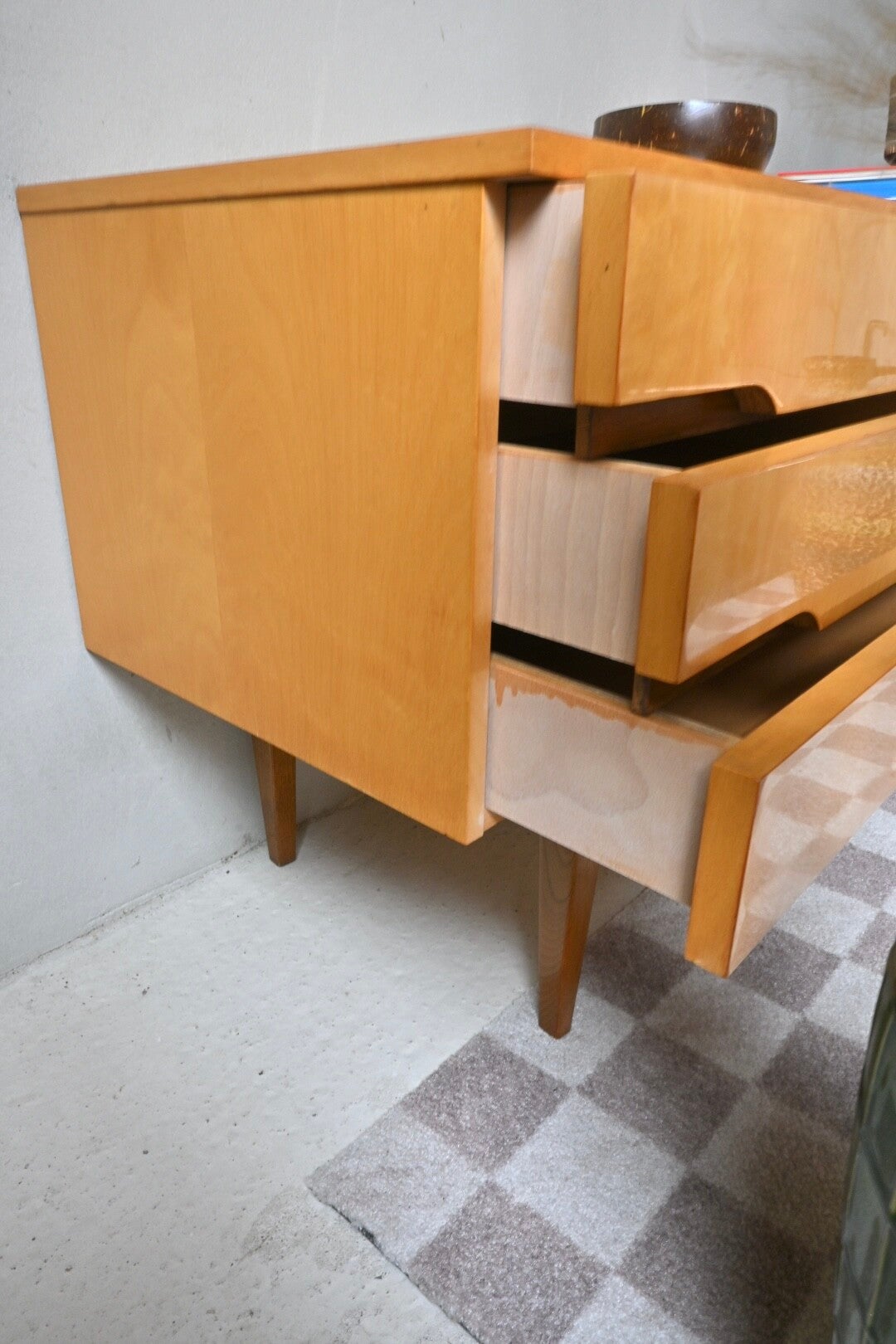 - Indeling: links 3 lades en rechts een klepdeurtje en een lade.