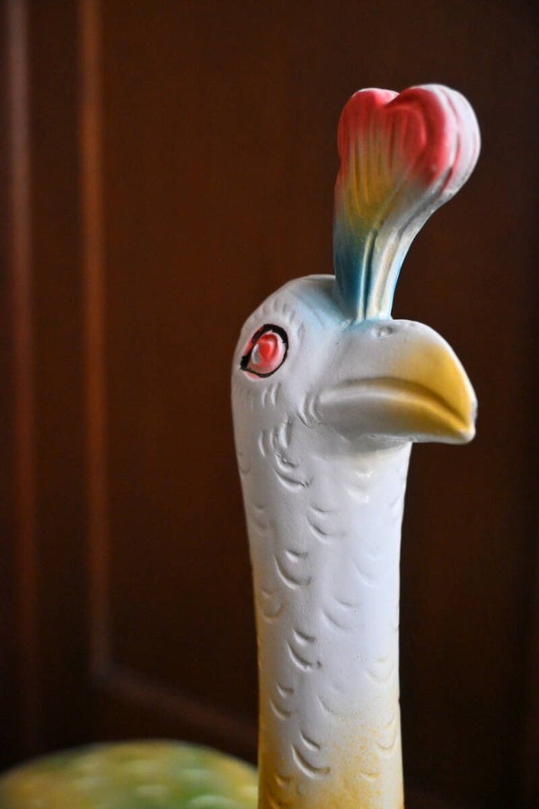 Mooie Decoratieve handgesneden beeld houten pauw 62cm H