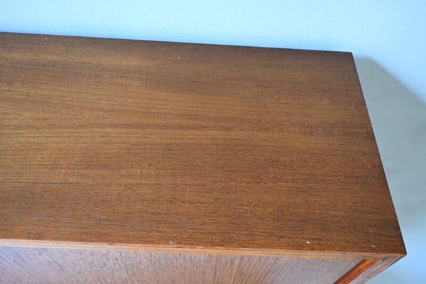 Prachtige tweedelige kast van de gerenommeerde Duitse meubelmaker Heinrich Riestenpatt, ontworpen in de jaren 60. Dit highboard combineert functioneel design met een warme, tijdloze uitstraling.