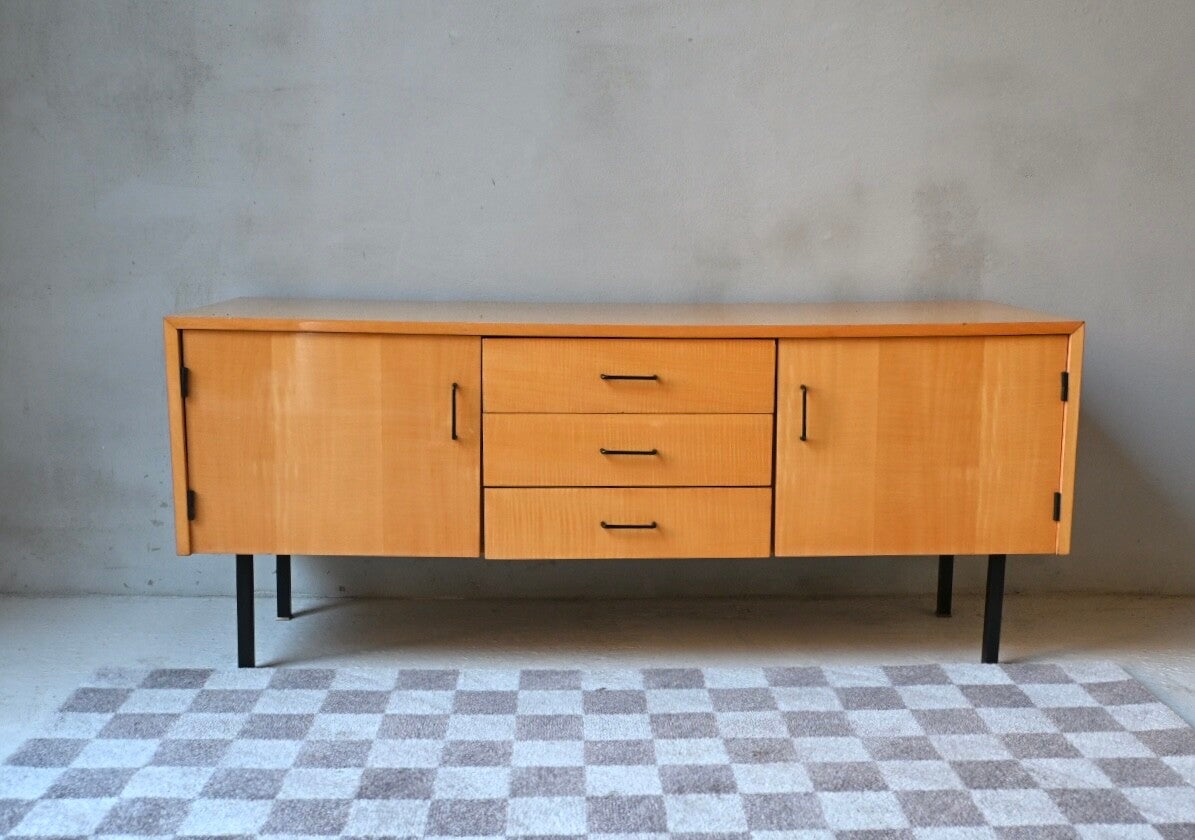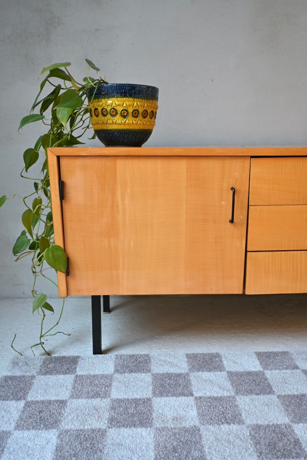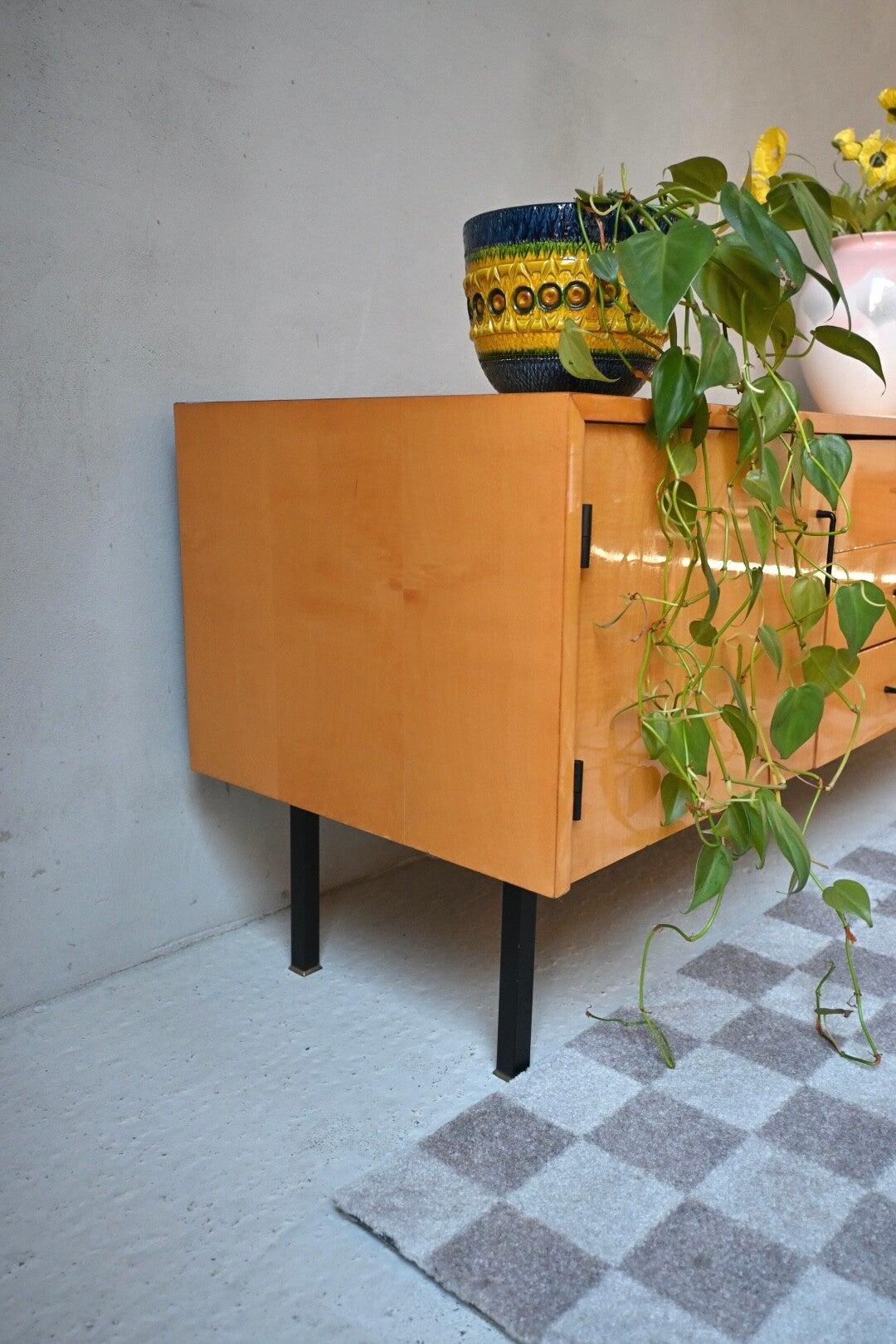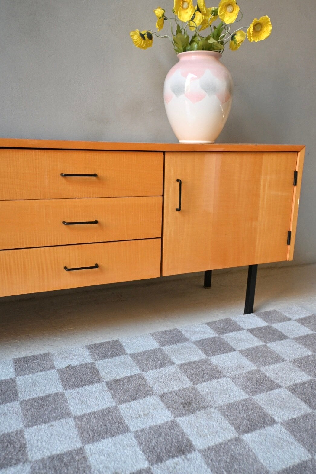 Mooi vintage lowboard uit de jaren ’60–’70, uitgevoerd in Hout fineer. Het lage en langgerekte ontwerp maakt dit meubel perfect als tv-meubel, audiomeubel of als stijlvolle opberger in een minimalistisch interieur.