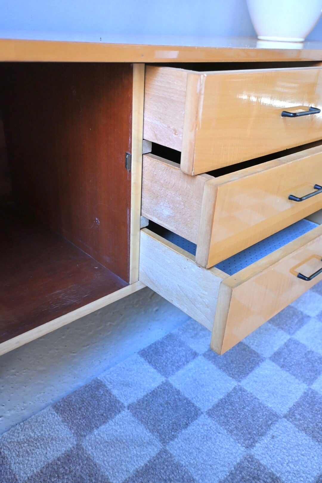 Met een praktische indeling ademt dit lowboard de typische mid-century modern stijl.