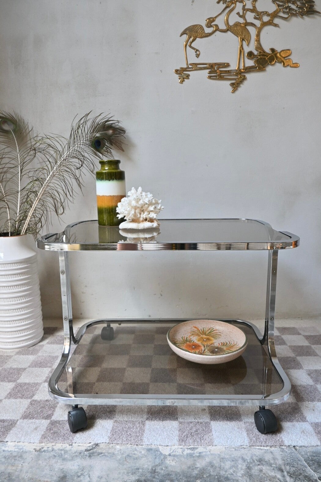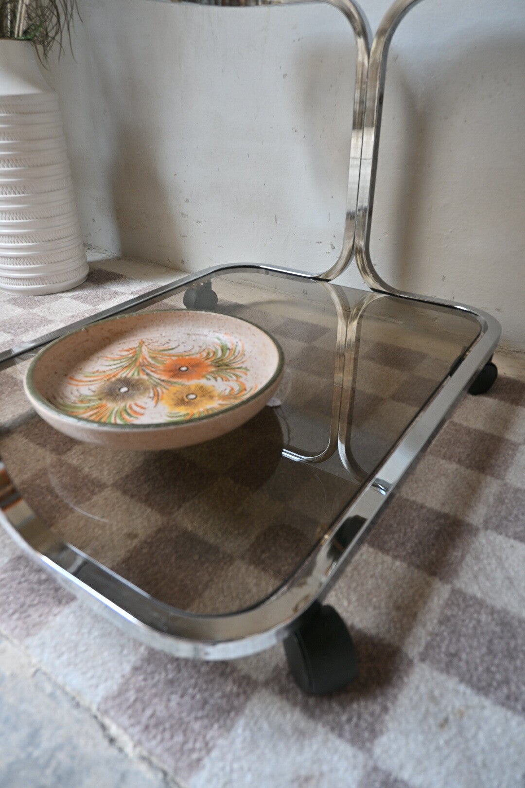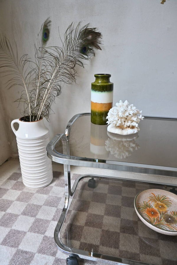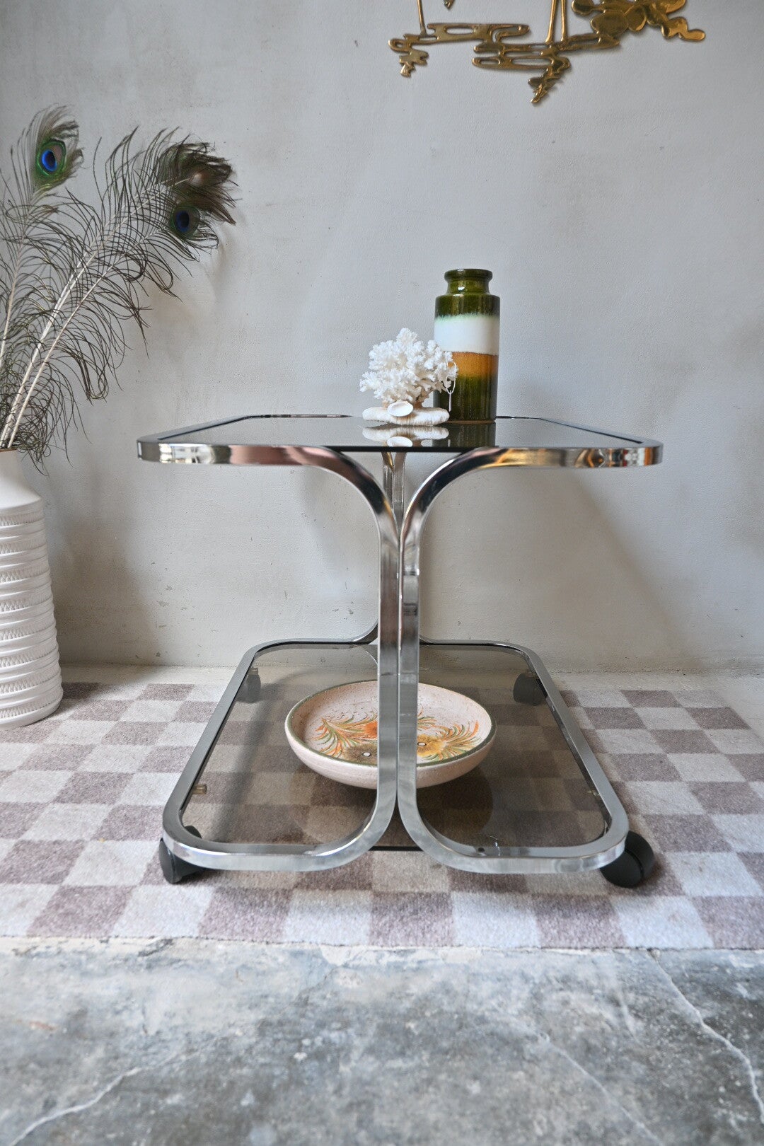 Vintage space age trolley, bijzettafel, rookglas 70’s