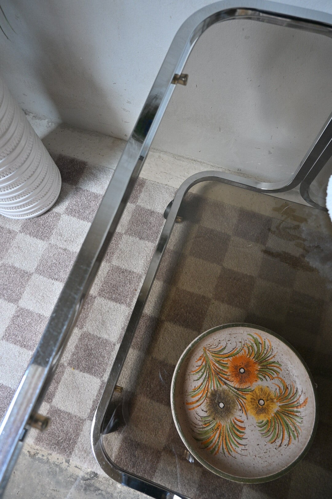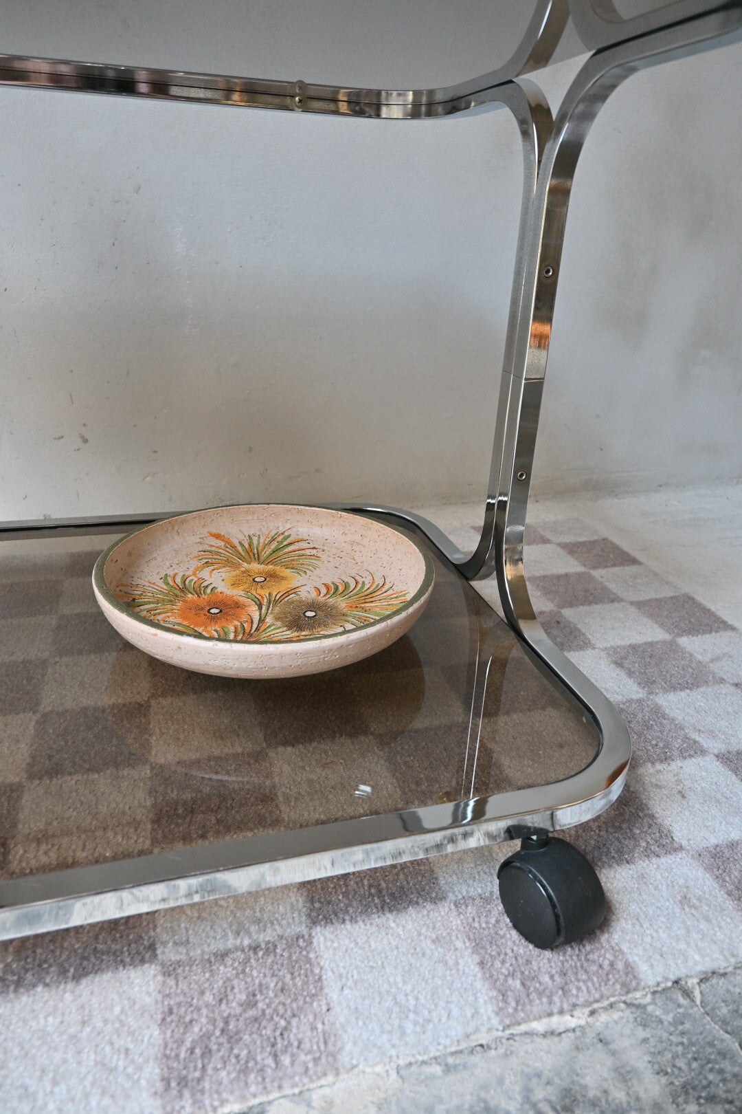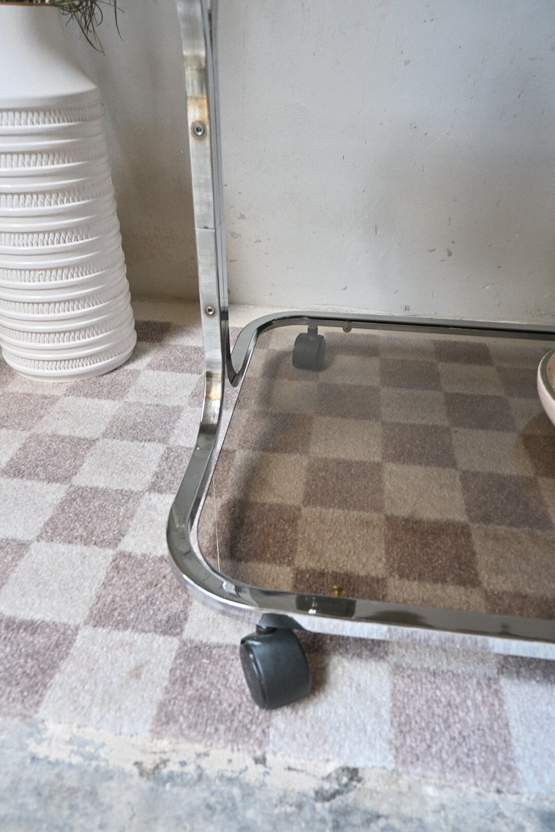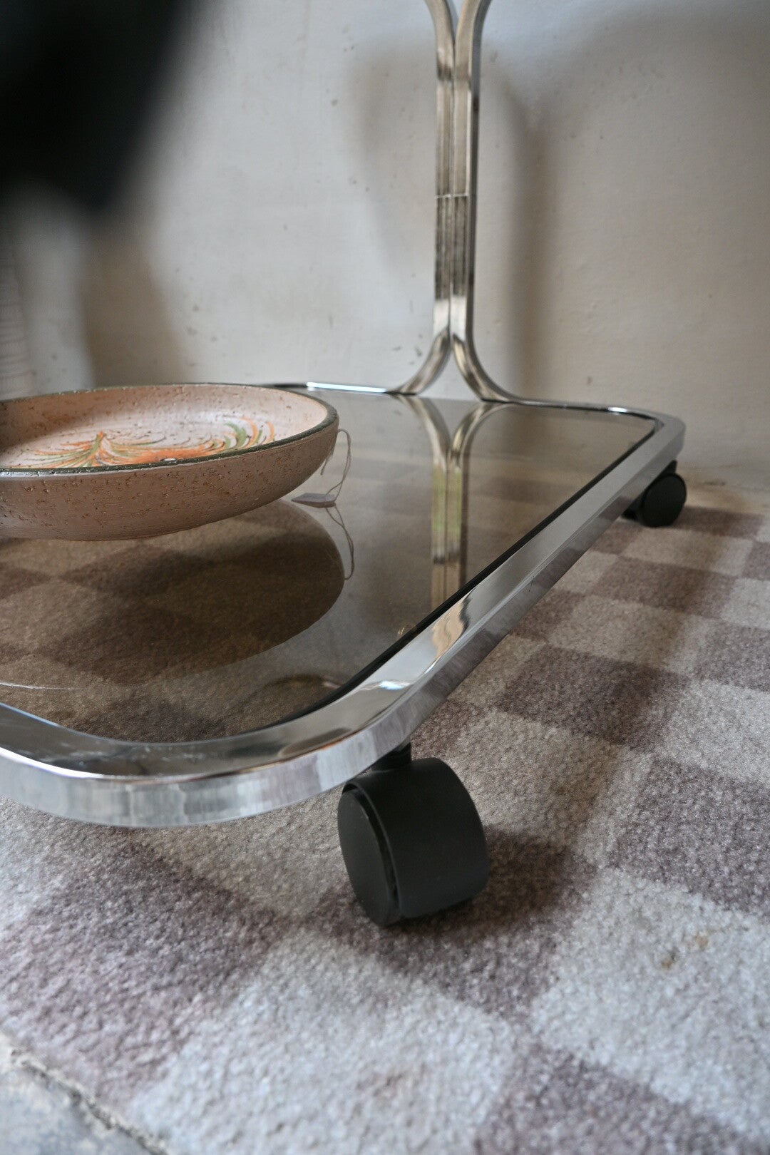 Vintage space age trolley, bijzettafel, rookglas 70’s