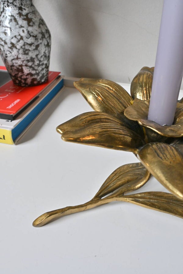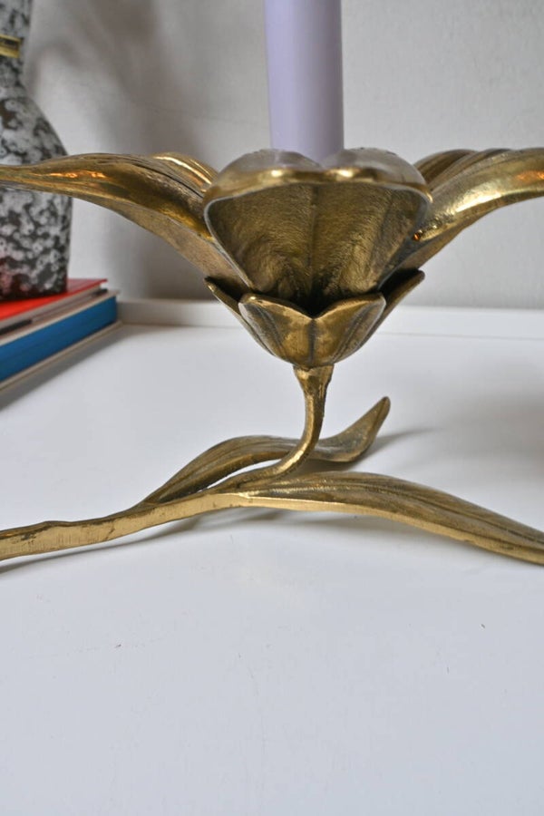 Een plaatje voor in je interieur dat is deze grote bloem kandelaar van messing zeker.
