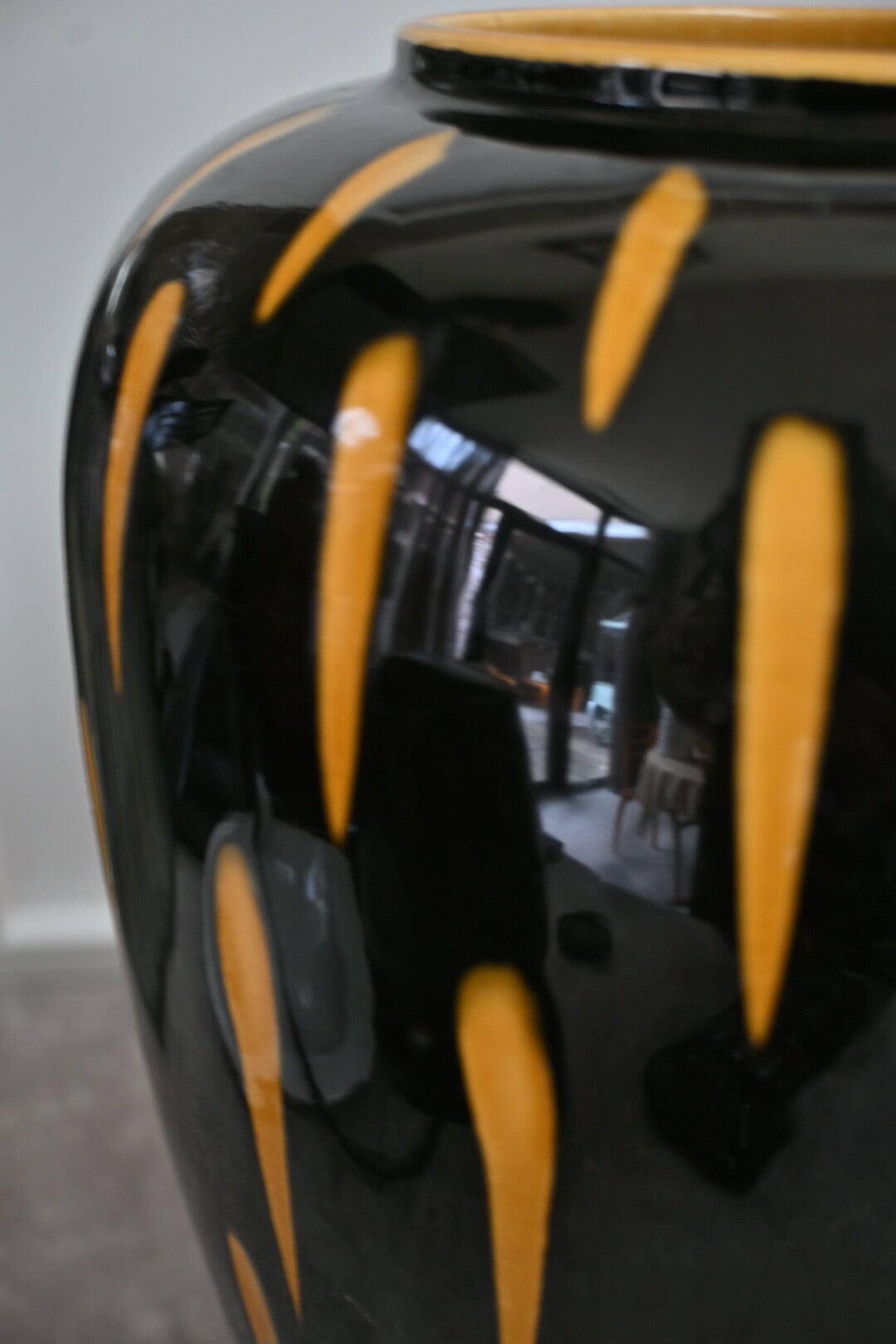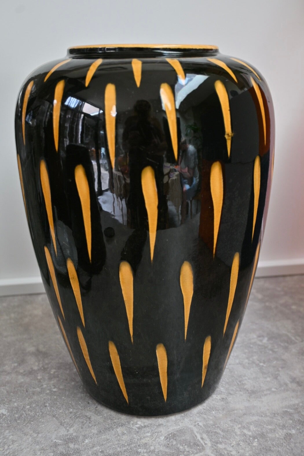 West-Germany vaas Zwart en Geel gedecoreerd Hoog 30cm