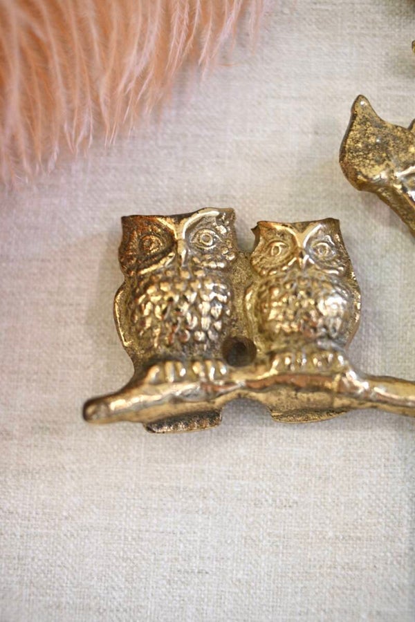 Geweldige messing wanddecoratie van 2 uilen op een tak, super mooi item voor aan je muur.