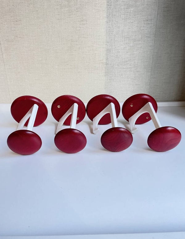 Set van 4 Space Age wandkapstokken Schönbuch in wit en rood. Worden alleen verkocht als set van 4.