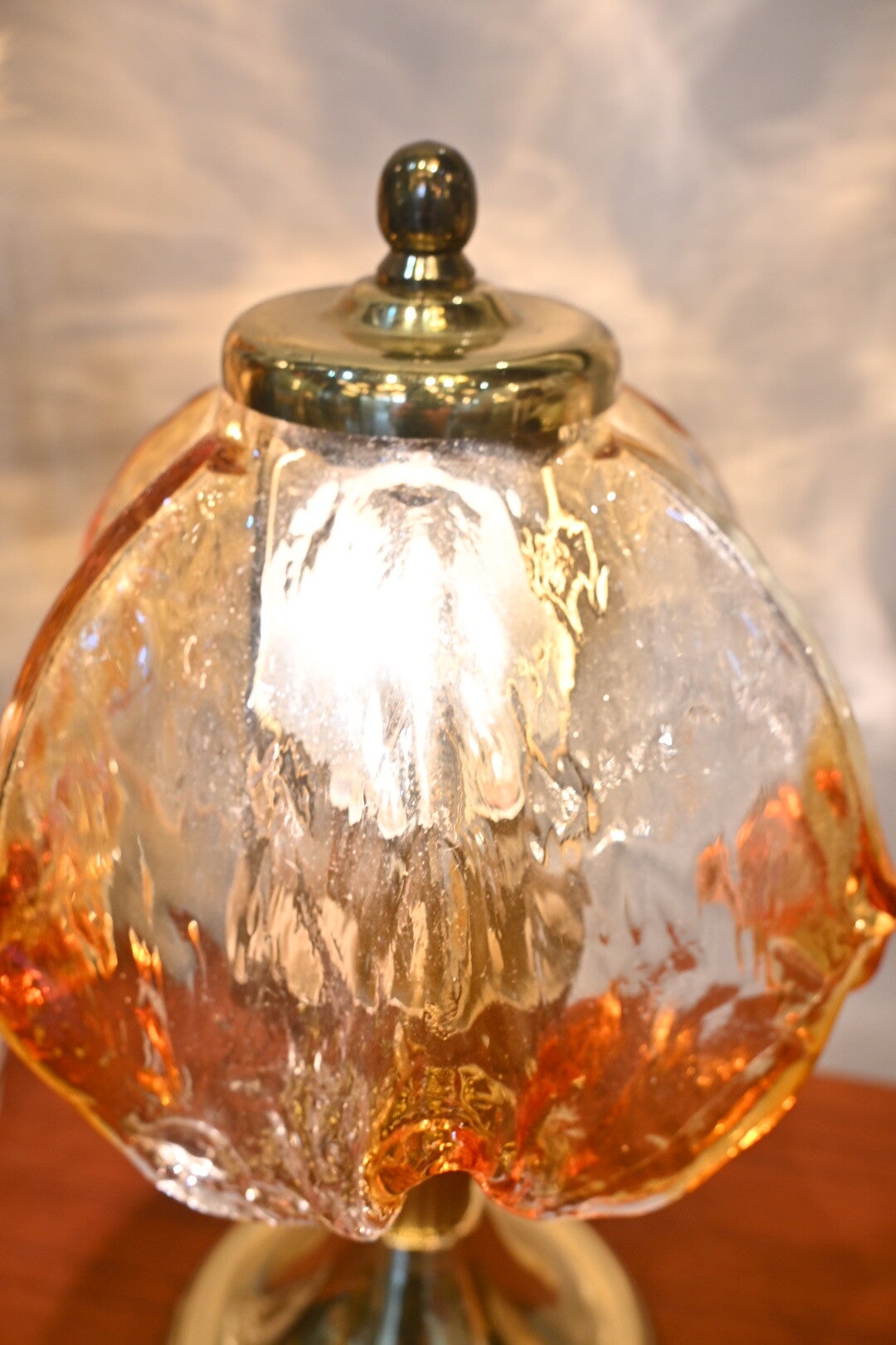Stijl: De lamp heeft een klassieke uitstraling, mogelijk geïnspireerd op Murano glaswerk door de gestructureerde kap.